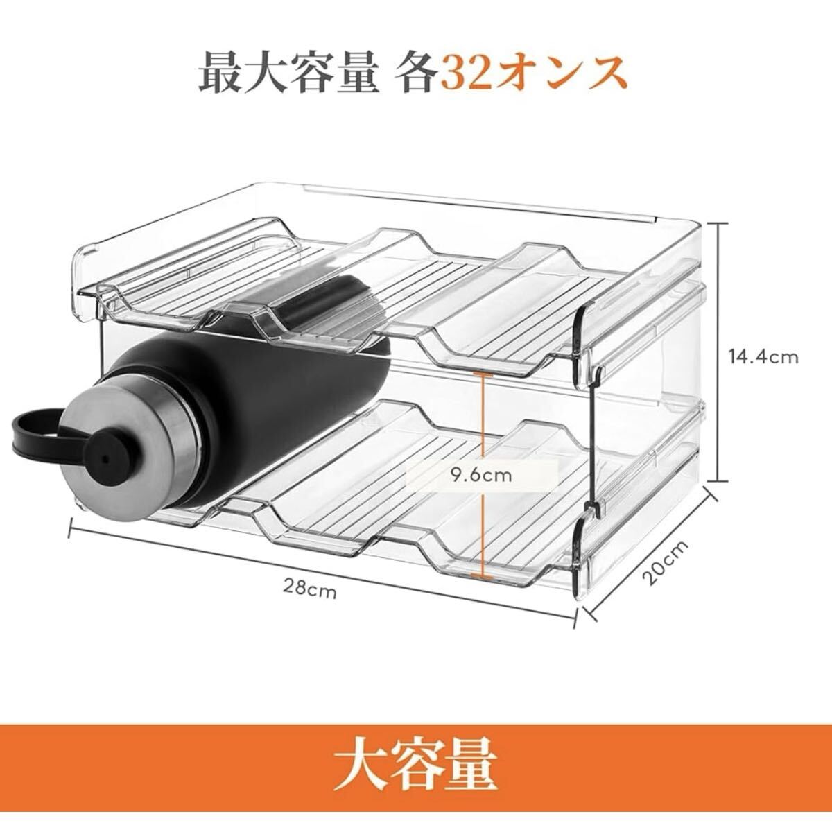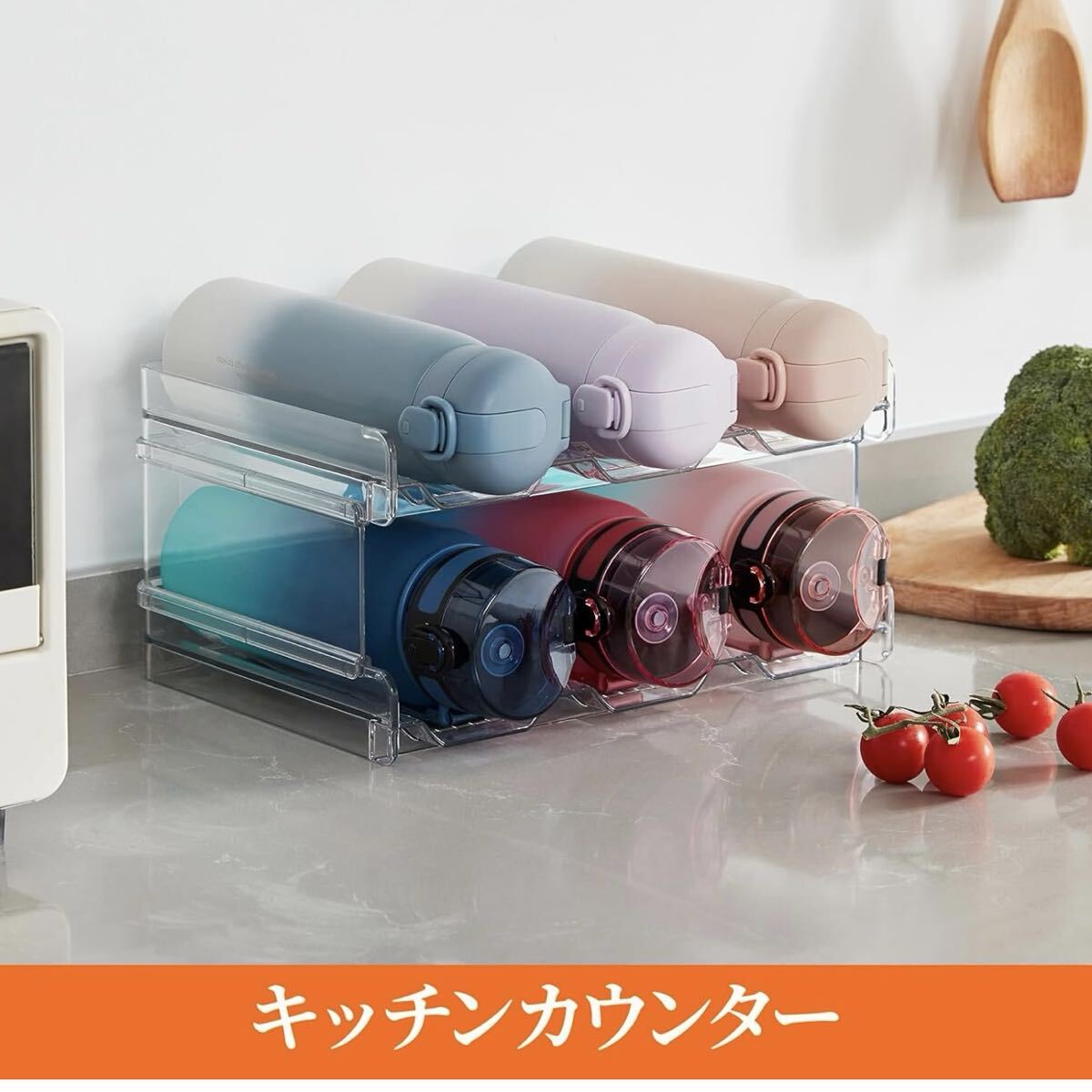 積み重ね可能なウォーターボトル収納ラック キャビネット、冷凍庫、パントリー用 - ペットボトル 収納ラック クリアワインラック キッチンカウンタートップ収納、キャビネット、オフィス用 - 2パック
