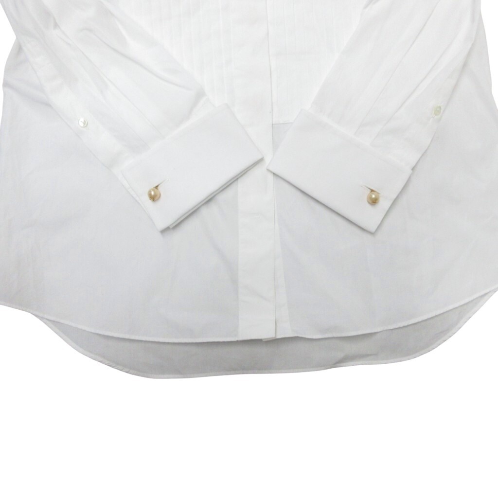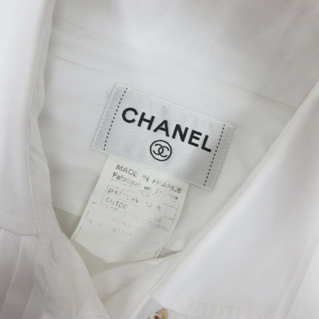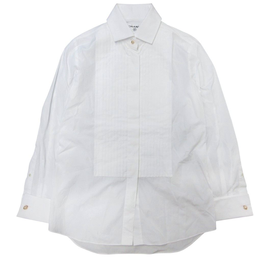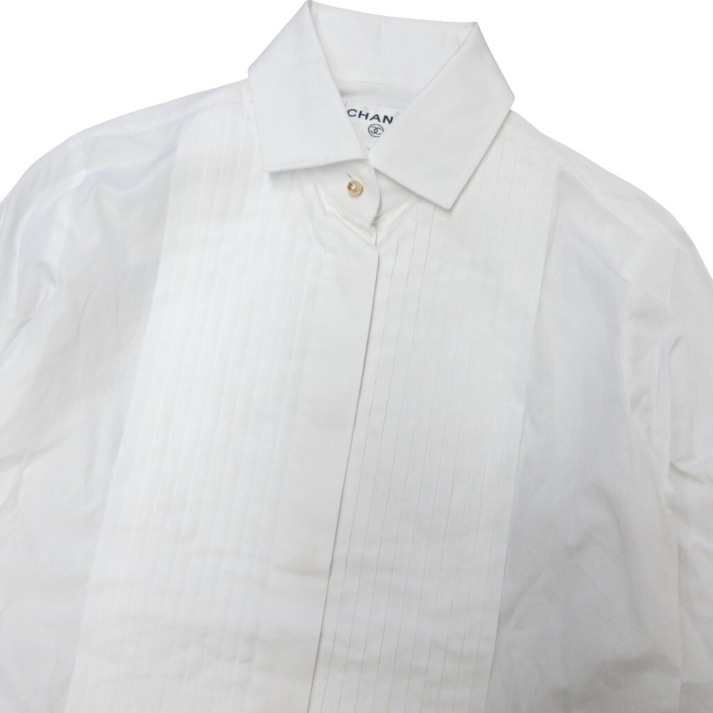 シャネル CHANEL 92P ドレスシャツ ココマーク パールボタン フロントプリーツ ブラウス 長袖 国内正規 白 ホワイト 36 ■MNK1