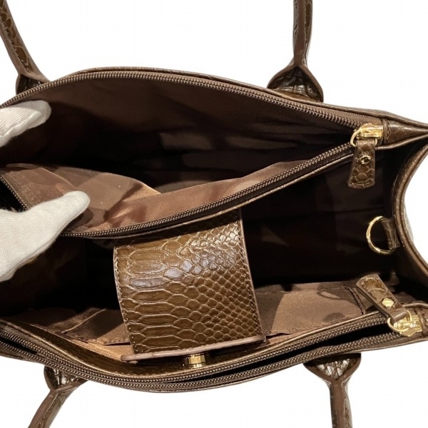 【ブランド】ハナエモリ 【型番】HMT067-70 【カラー】ブラウン 【素材】レザー 【仕様】外側:ポケットなし 内側:オープンポケット×2、ファスナー付ポケット×3 【サイズ】H約24cm×W約33cm×D約14cm 持ち手:約14cm ショルダー:約105cm~約122cm 【付属品】ショルダーストラップ 【ランク】A (美品) 【状態】 持ち手:擦れ、小程度有り 外側の状態:擦れ、角擦れ、極小程度有り 内側の状態:擦れ、角擦れ、極小程度有り 金具の状態:擦れ、変色、小程度有り 付属品の状態:ヨレ、中程度有り | |