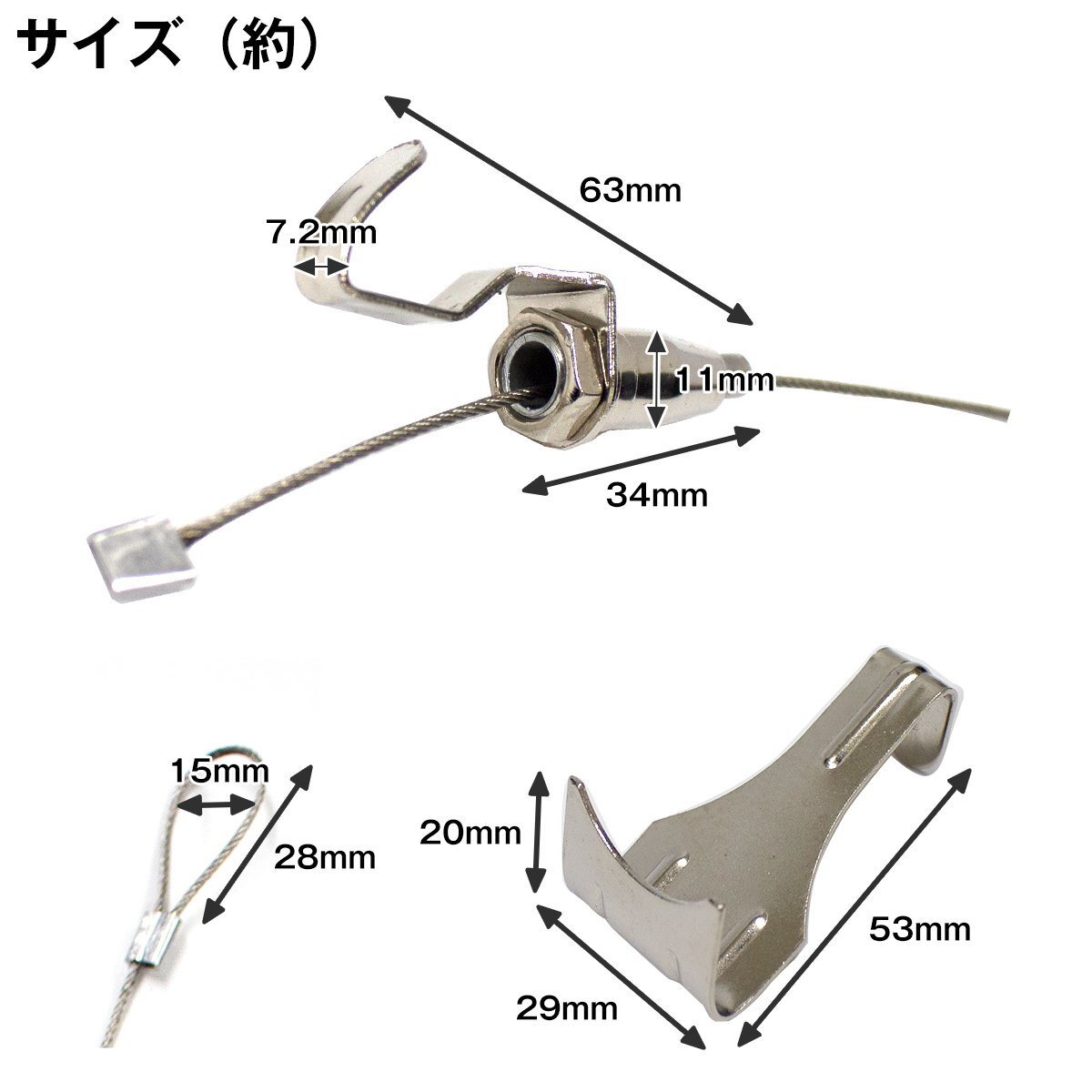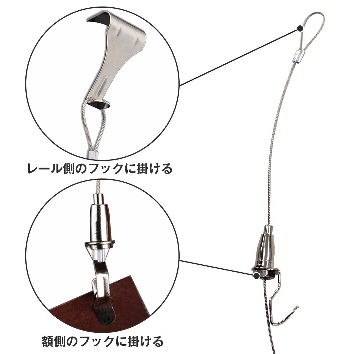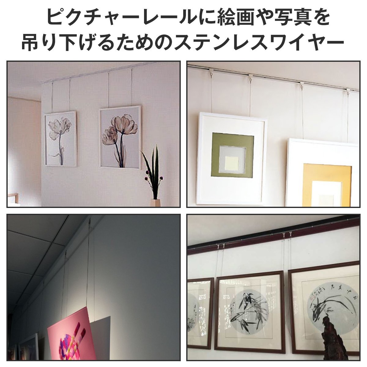 10本set ピクチャー レール 用 ワイヤー フック 1.5m 絵画 写真 額 展示 賞状 金具 1.5m 150cm 吊り 掛け フック付 10セット