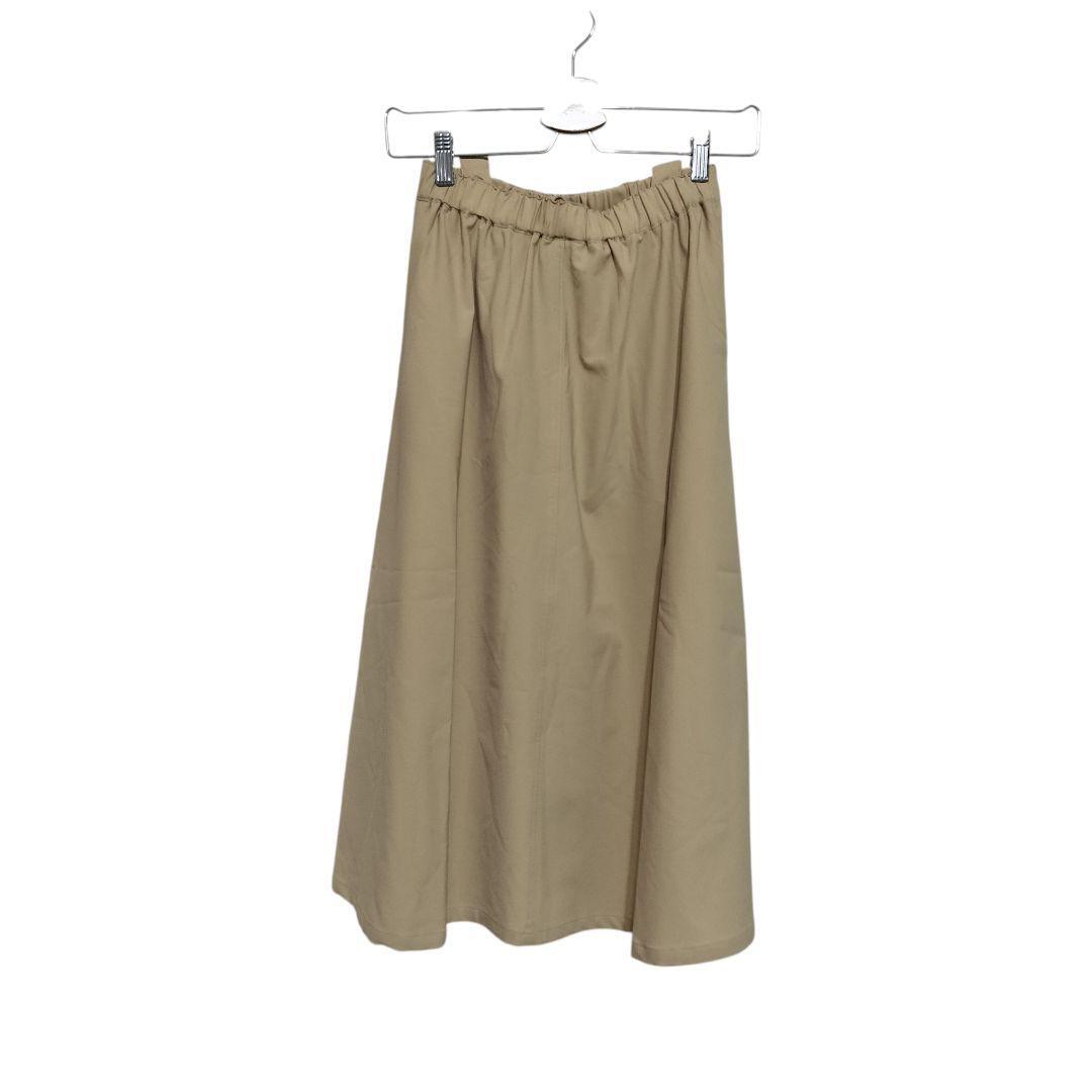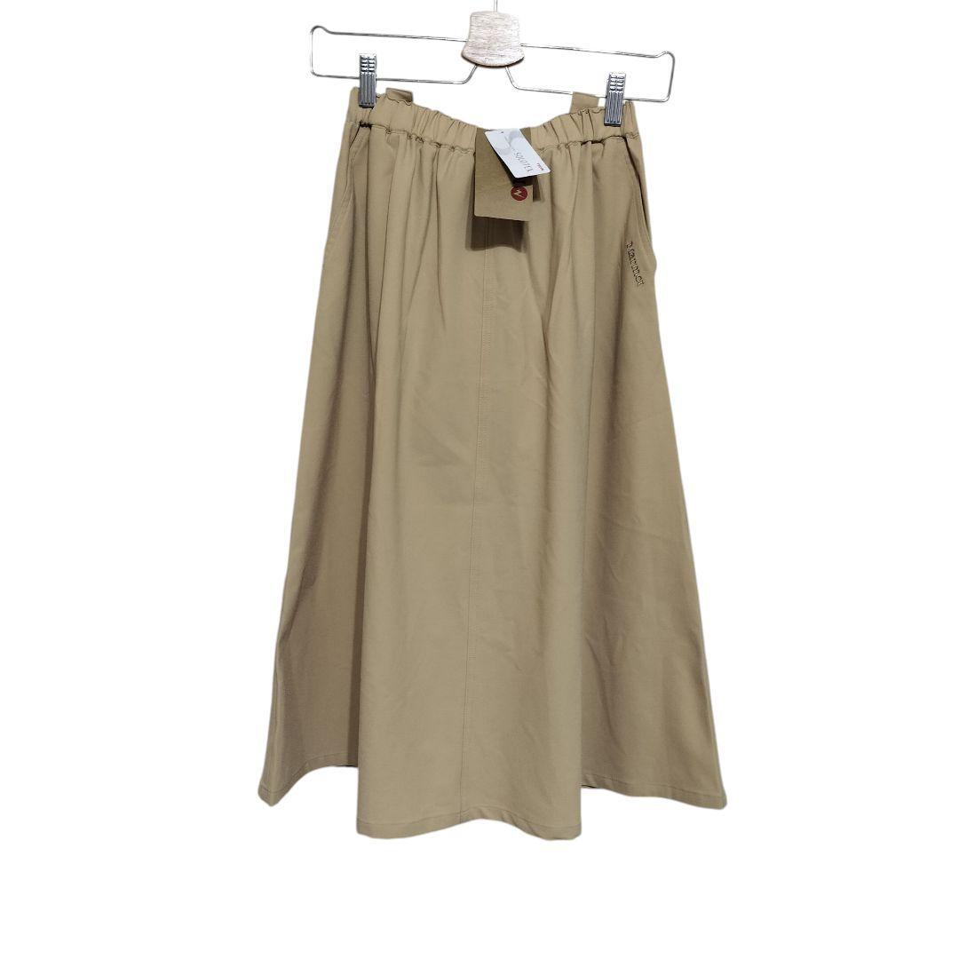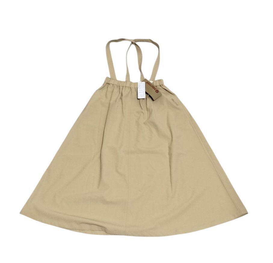 ストレッチ性と形態回復性に優れるSOLOTEXを使用した、膝下丈のスカートです。肩紐にはボタンが2つ配されているので、体型に合わせて長さを調節することが可能で、取り外すこともできます。また、シワになりにくい生地のため、キャンプから旅行、タウンユースまで使用できる汎用的なアイテムです。カラーはベージュでかわいいです