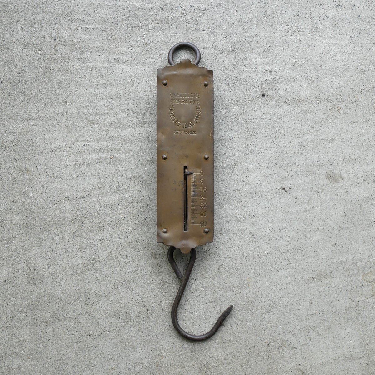 商品説明 explanation | フックに対象物を引っ掛けて重さを量る、バネ式のスケールです。 「CHATILLONS IMPROVED SPRING BALANCE NEW YORK」 と刻印されています。 店舗ディスプレイなどをする際、何かを吊すアイテムにいかがでしょうか。 |