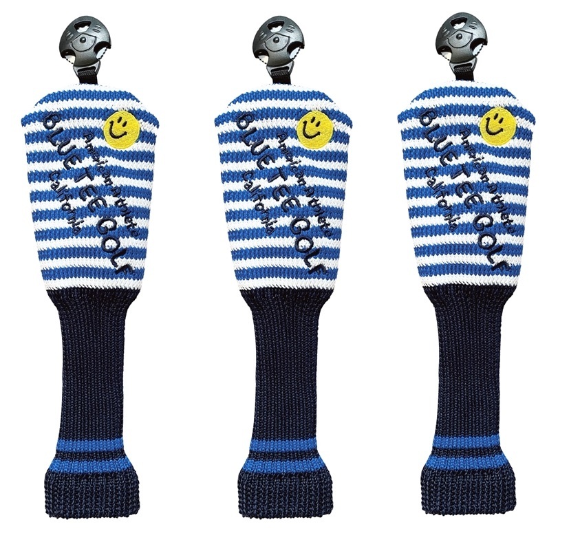 ③1-3:3本セット【ブルー/ネイビー】ブルーティーゴルフ【カリフォルニア ストライプスマイル】ユーティリティ用カバー HUT-005 送料無料