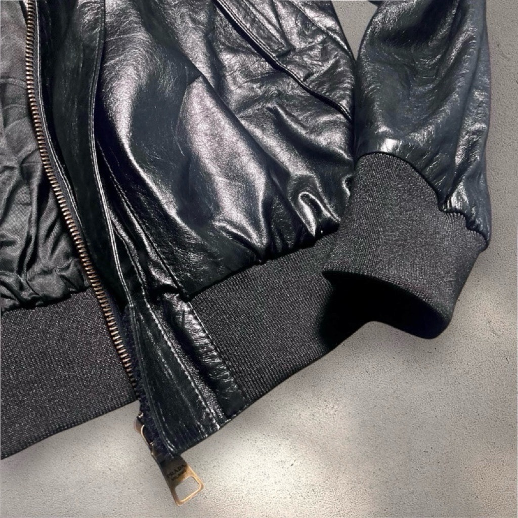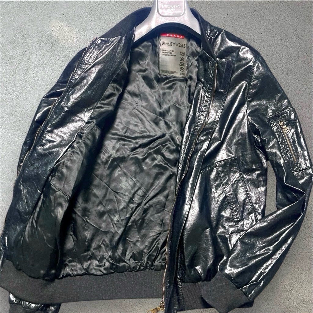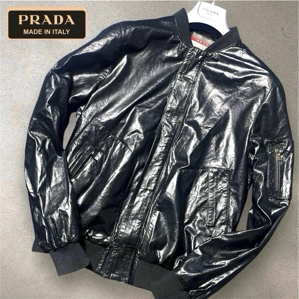 【プラダの本革フライトJKT】極美品75万◆ラムスキン レザー ジャケット ML【稀少◎一点物】黄金メタル◎イタリア製 PRADA メンズ/ダウン