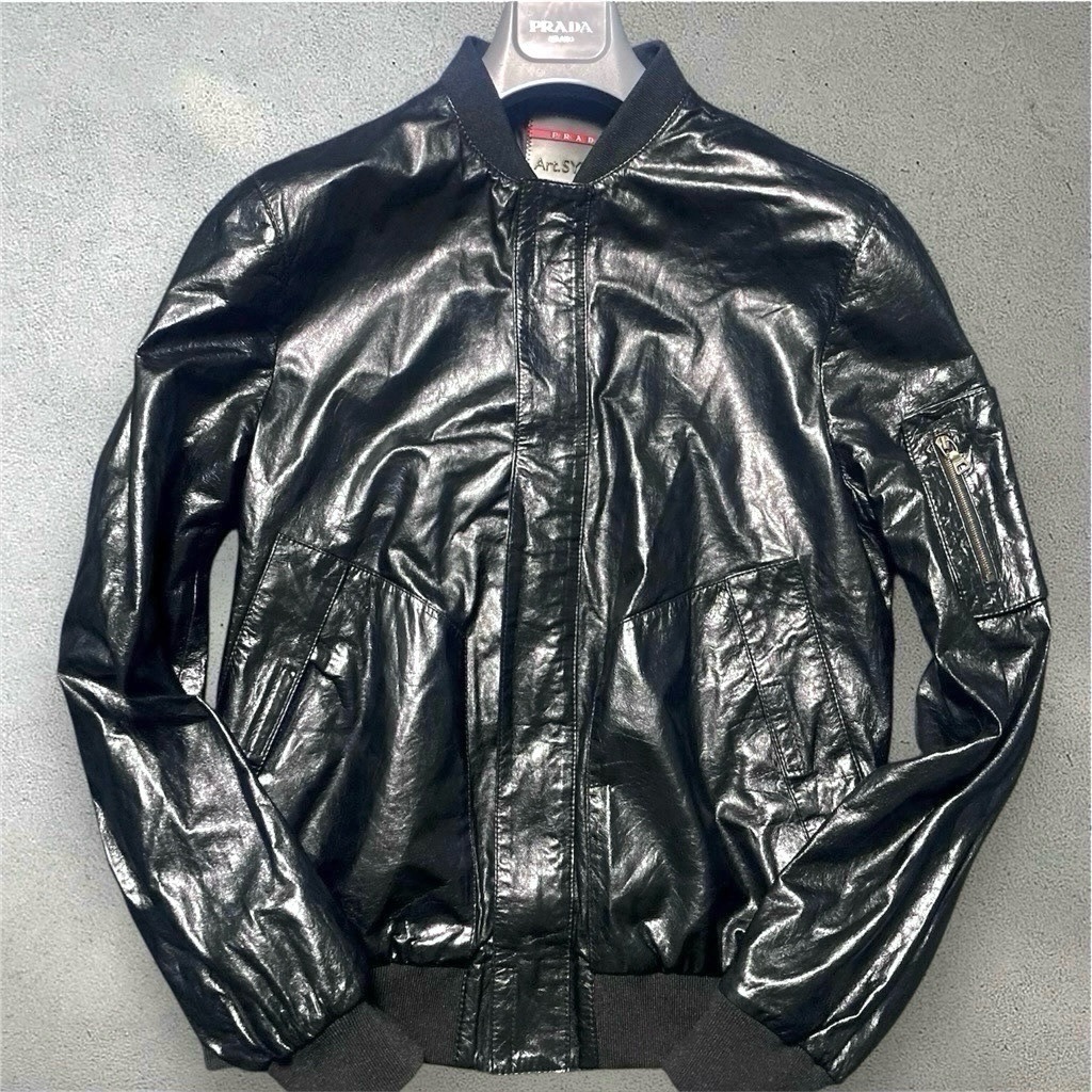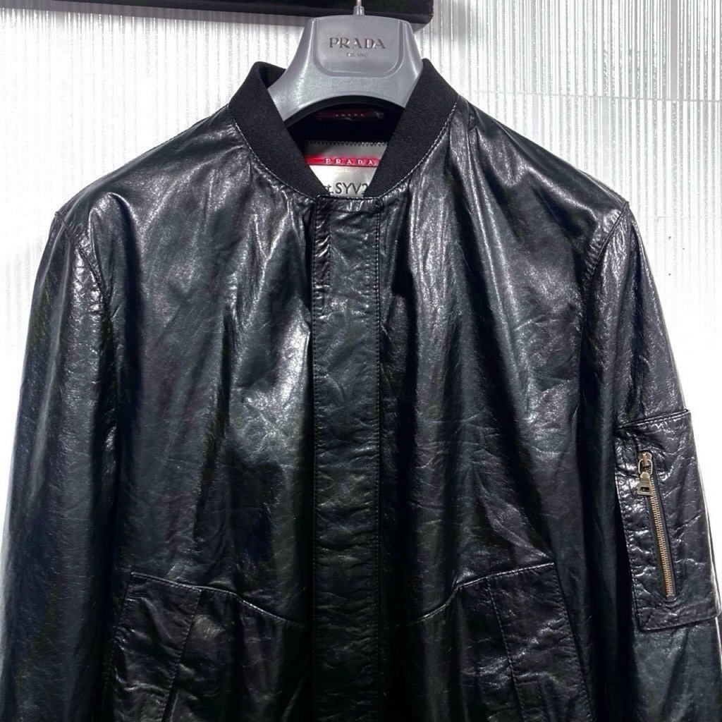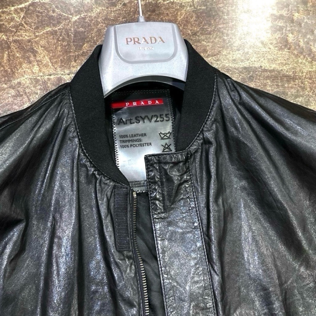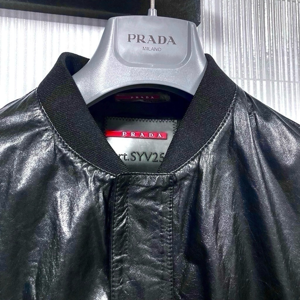 【プラダの本革フライトJKT】極美品75万◆ラムスキン レザー ジャケット ML【稀少◎一点物】黄金メタル◎イタリア製 PRADA メンズ/ダウン