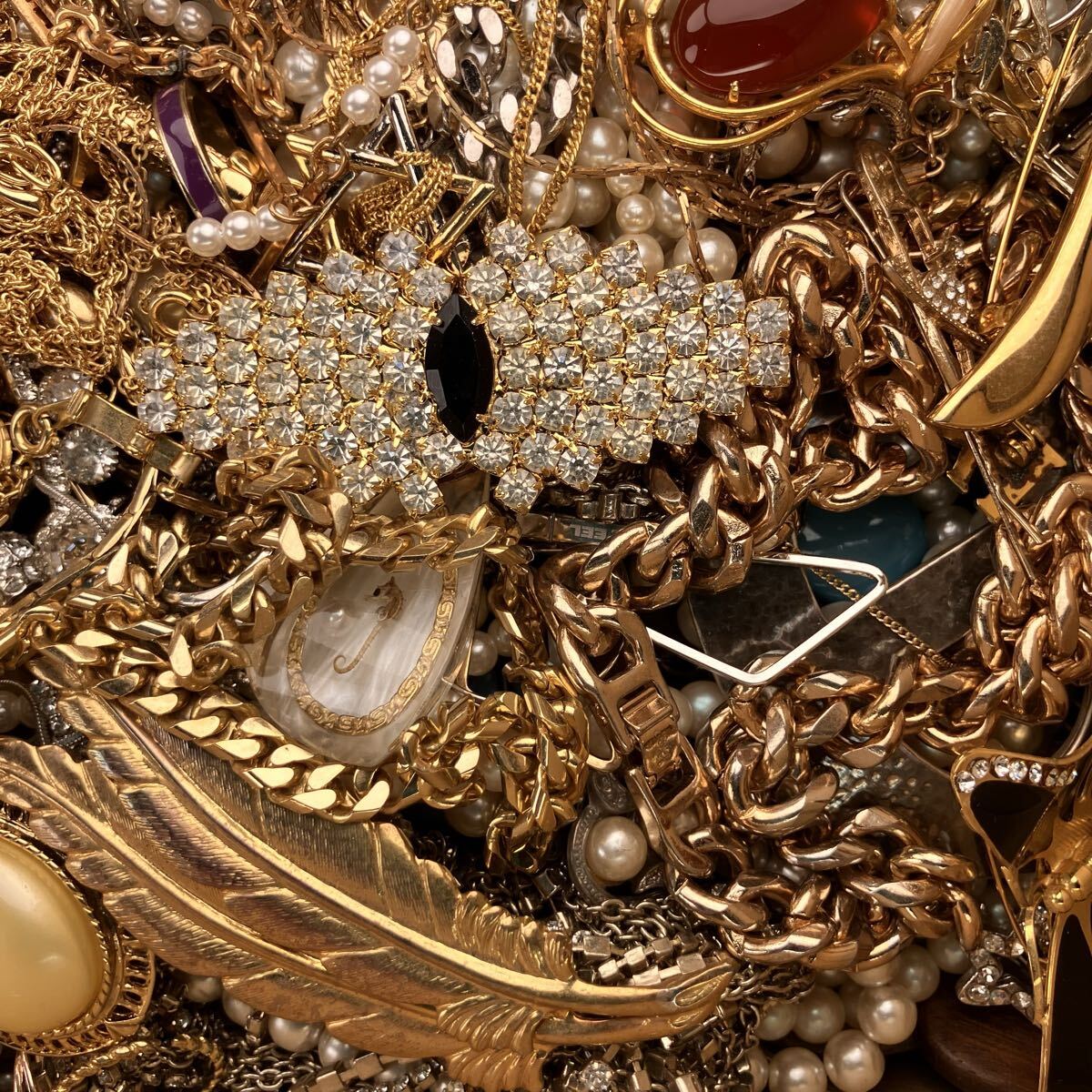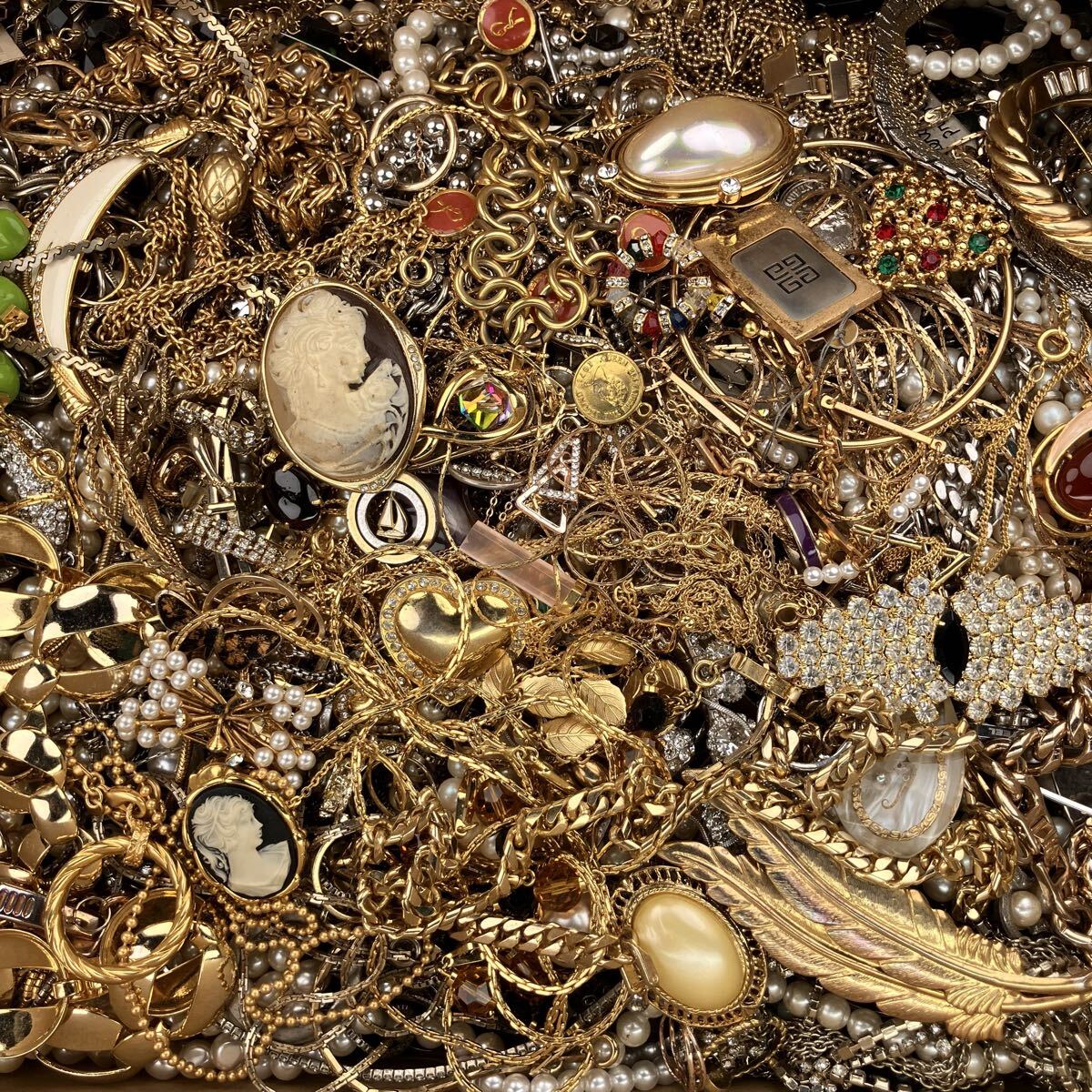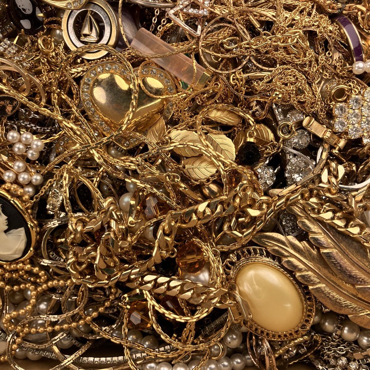 アクセサリー 約7.4kg ネックレス ブローチ イヤリング タイピン カフス 1円スタート メッキ ジャンク まとめ 大量(Y190)