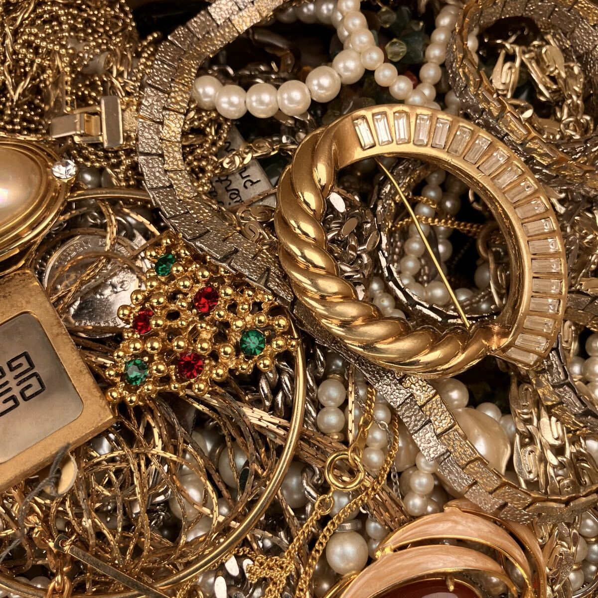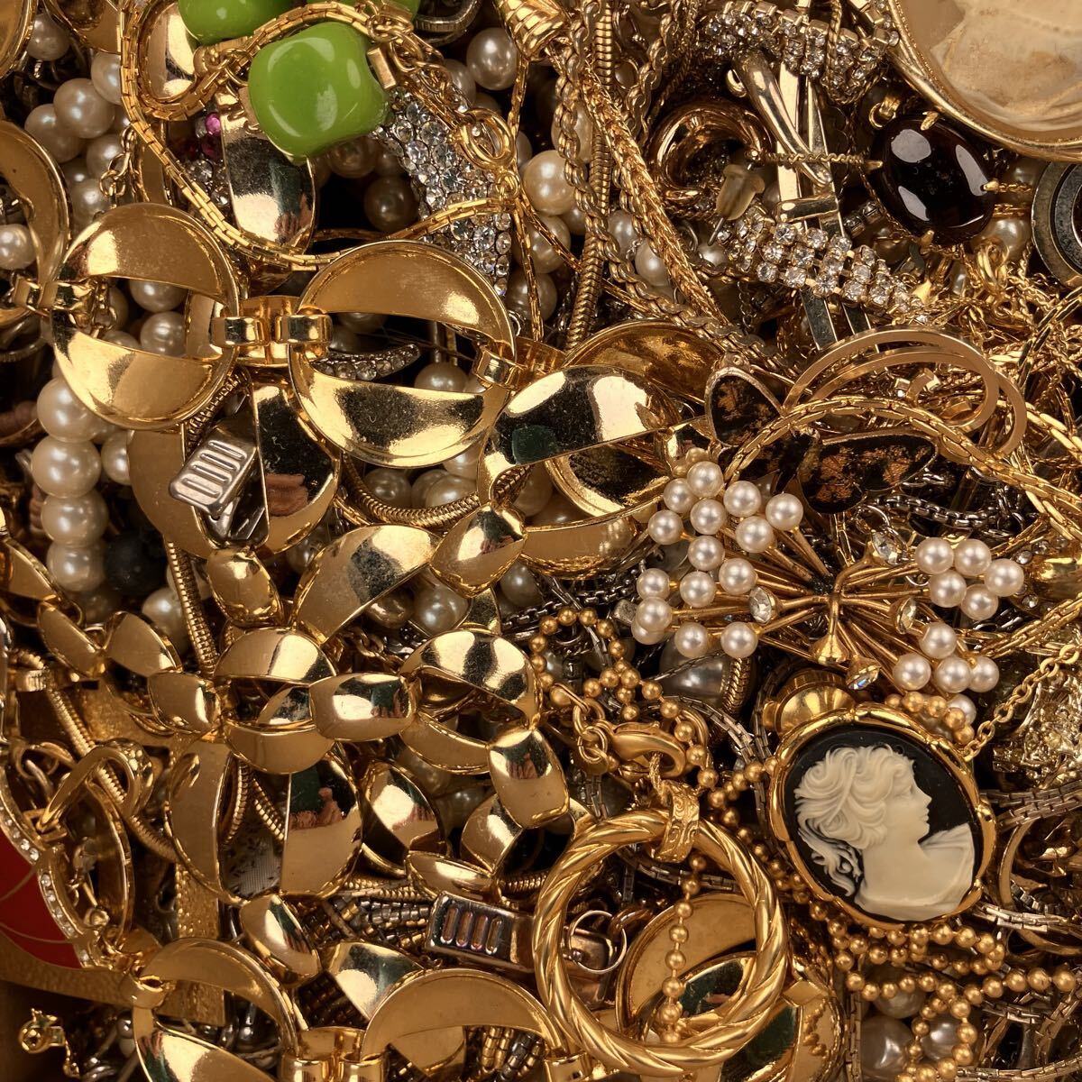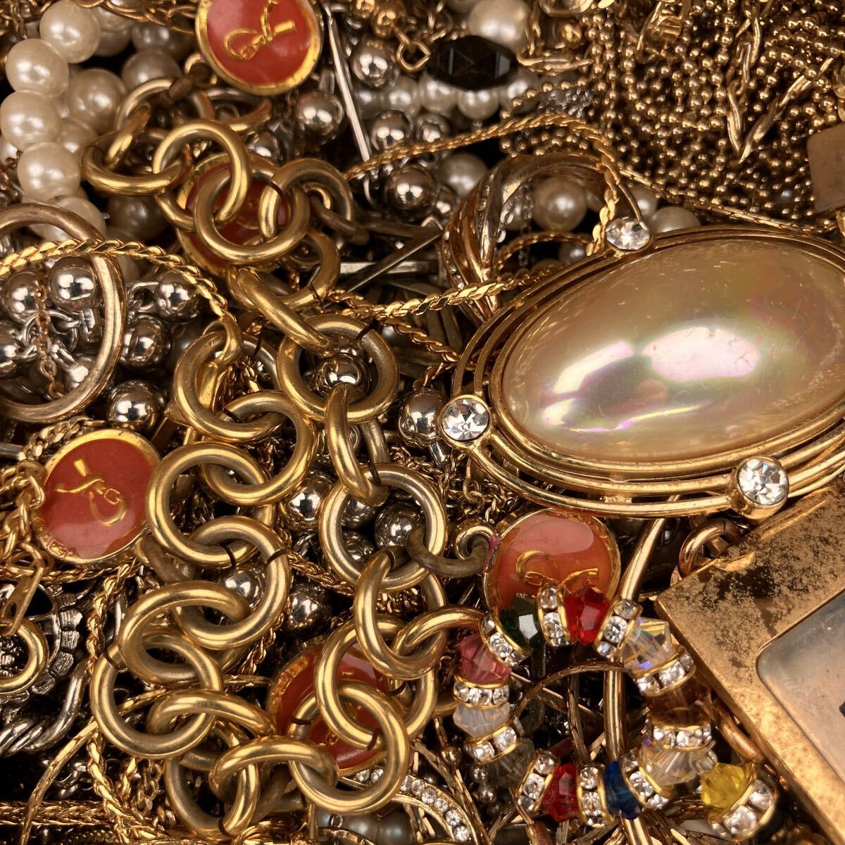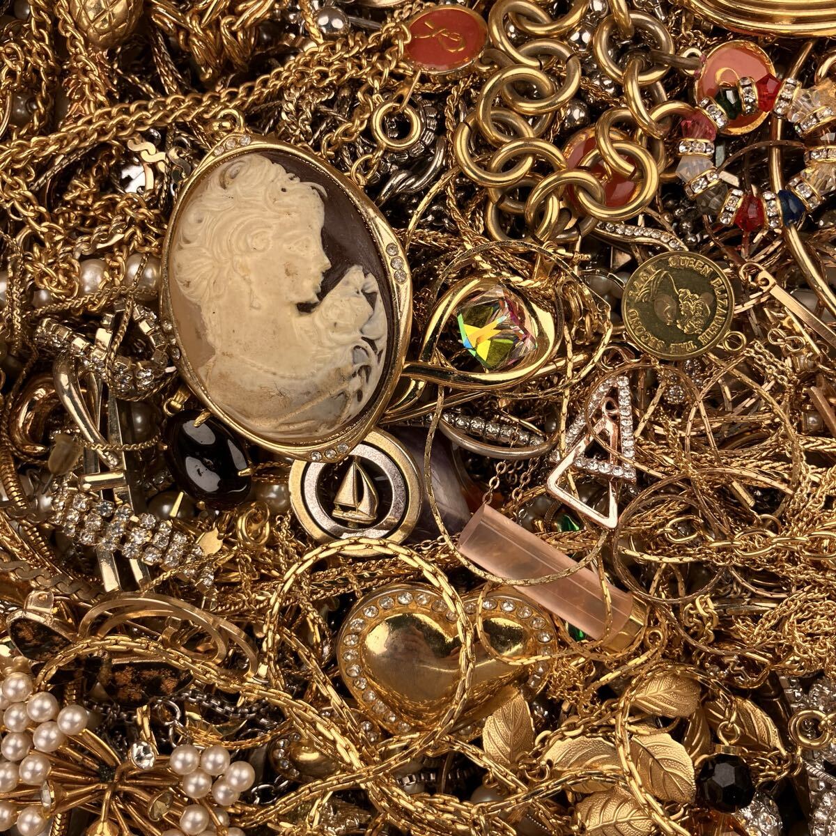 アクセサリー 約7.4kg ネックレス ブローチ イヤリング タイピン カフス 1円スタート メッキ ジャンク まとめ 大量(Y190)