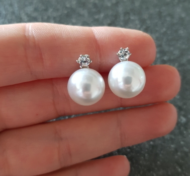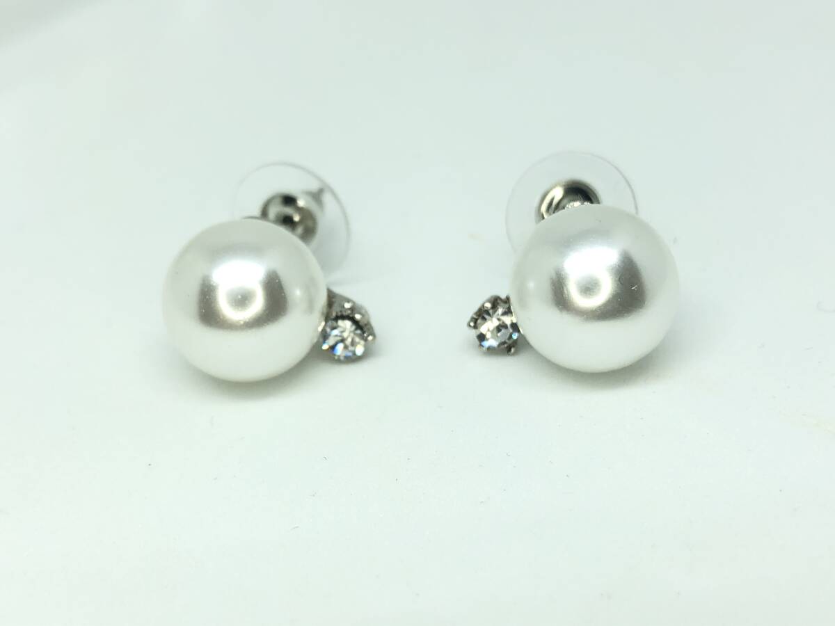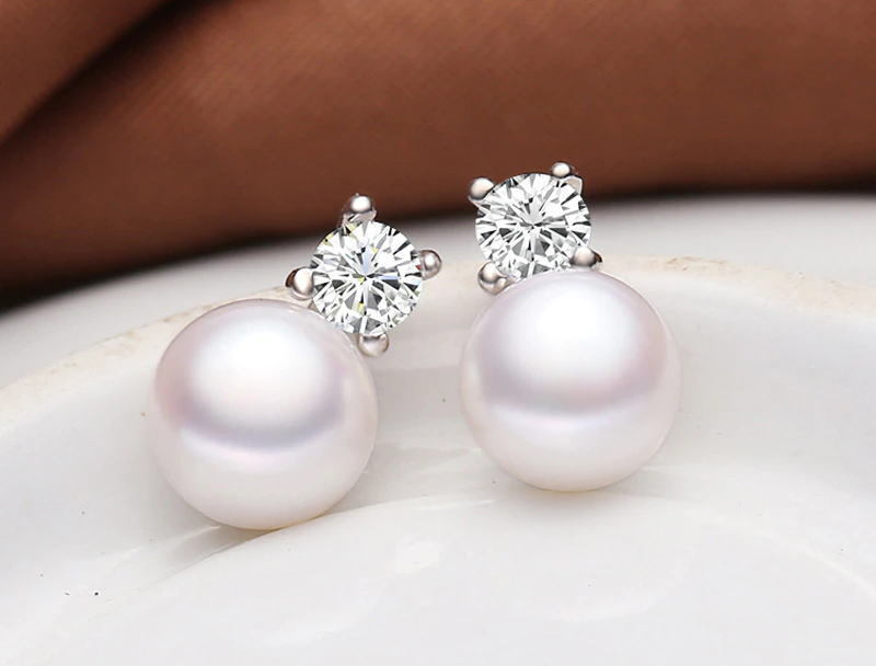 キラキラジルコニアダイヤモンドにパール★天然真珠スタッド ピアス シルバー925