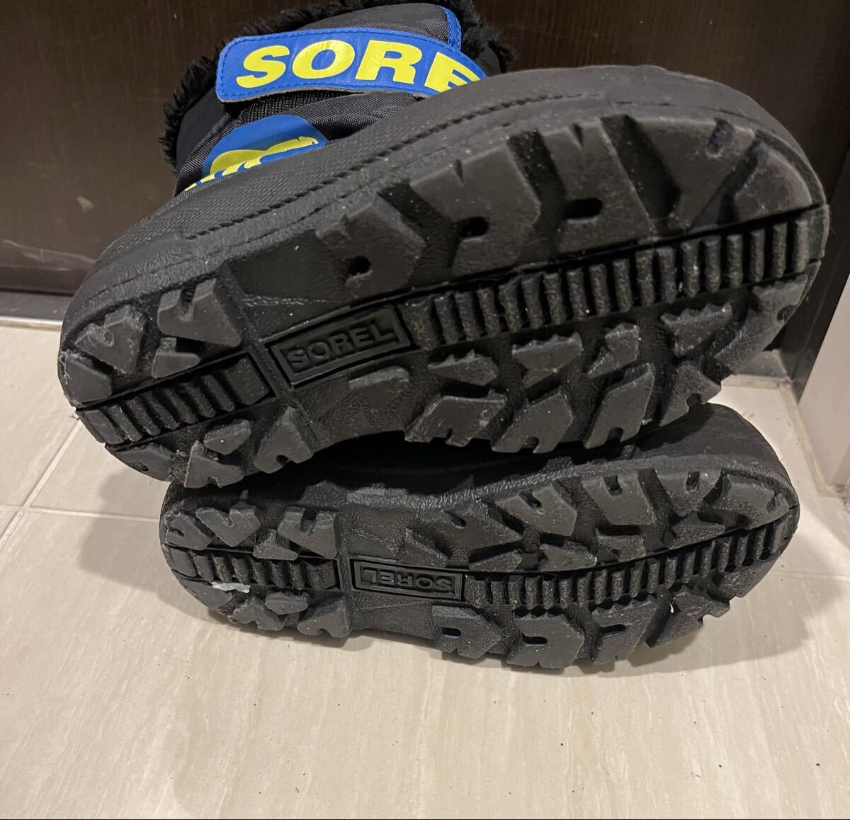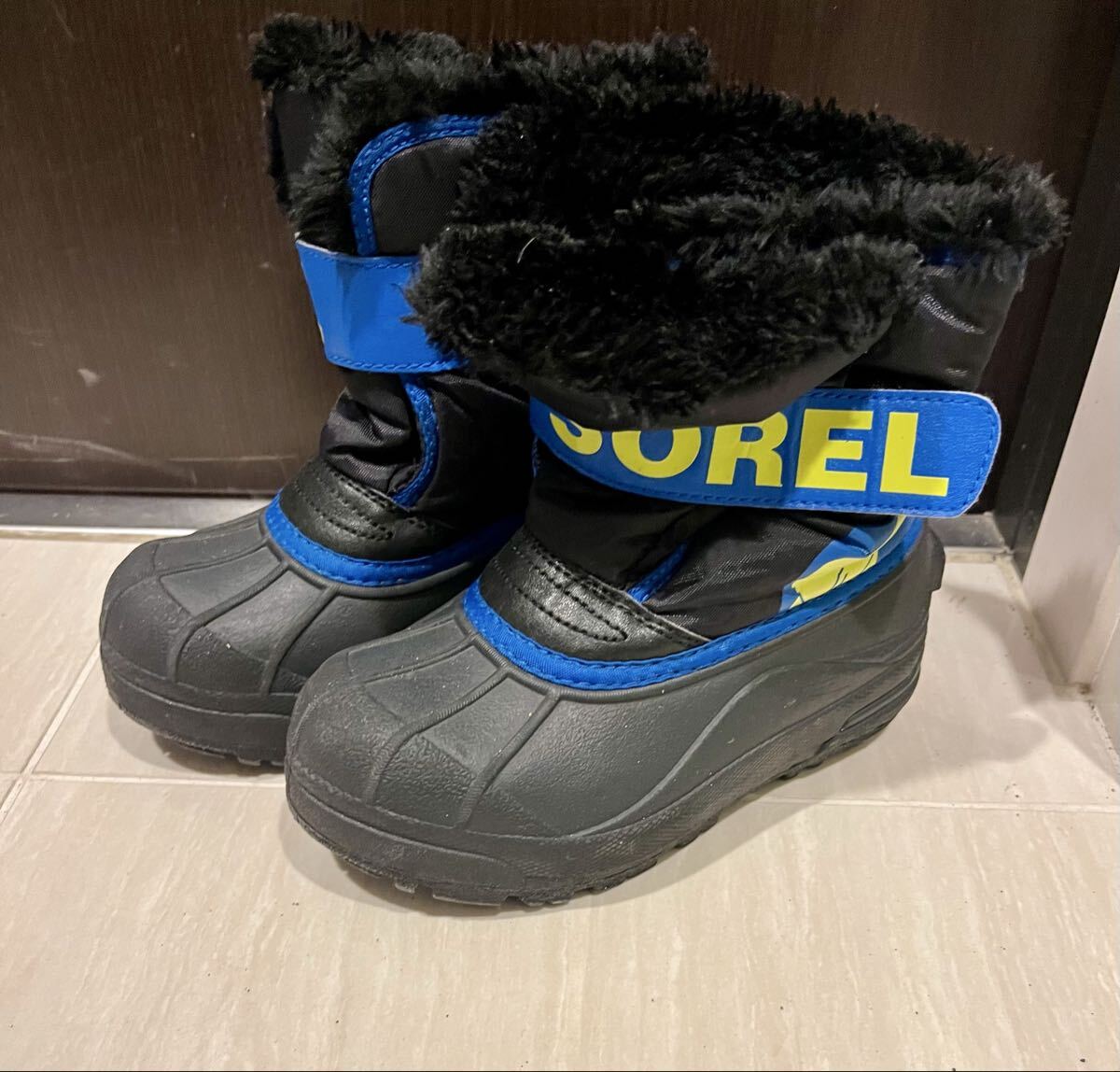 ファー付きのSOREL製子ども用スノーブーツ、優れた防寒性とグリップ力を提供します。