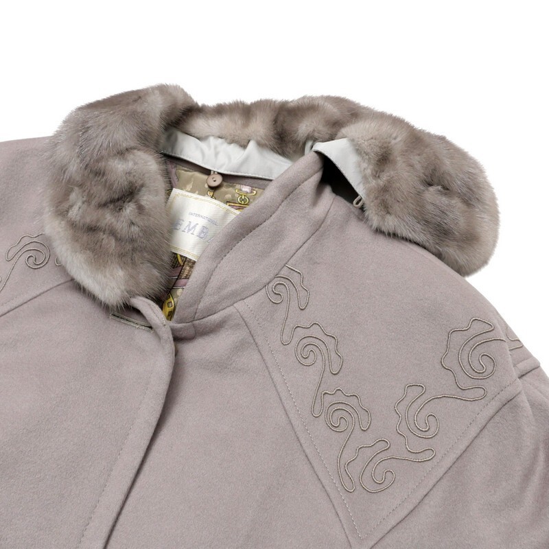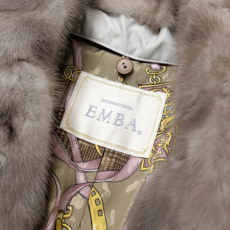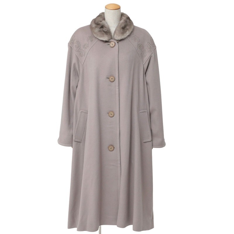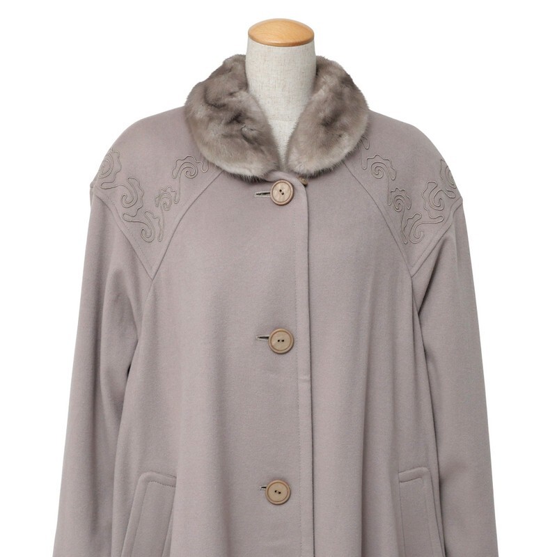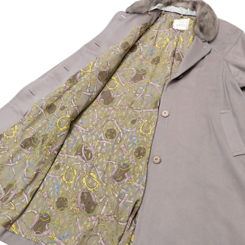 GR5930▼エンバ EMBA*ピアチェンツァ PIACENZA*カシミヤロングコート 襟:ミンクファー/着脱可能 裏地:総柄 L~相当 グレージュ系 | |||