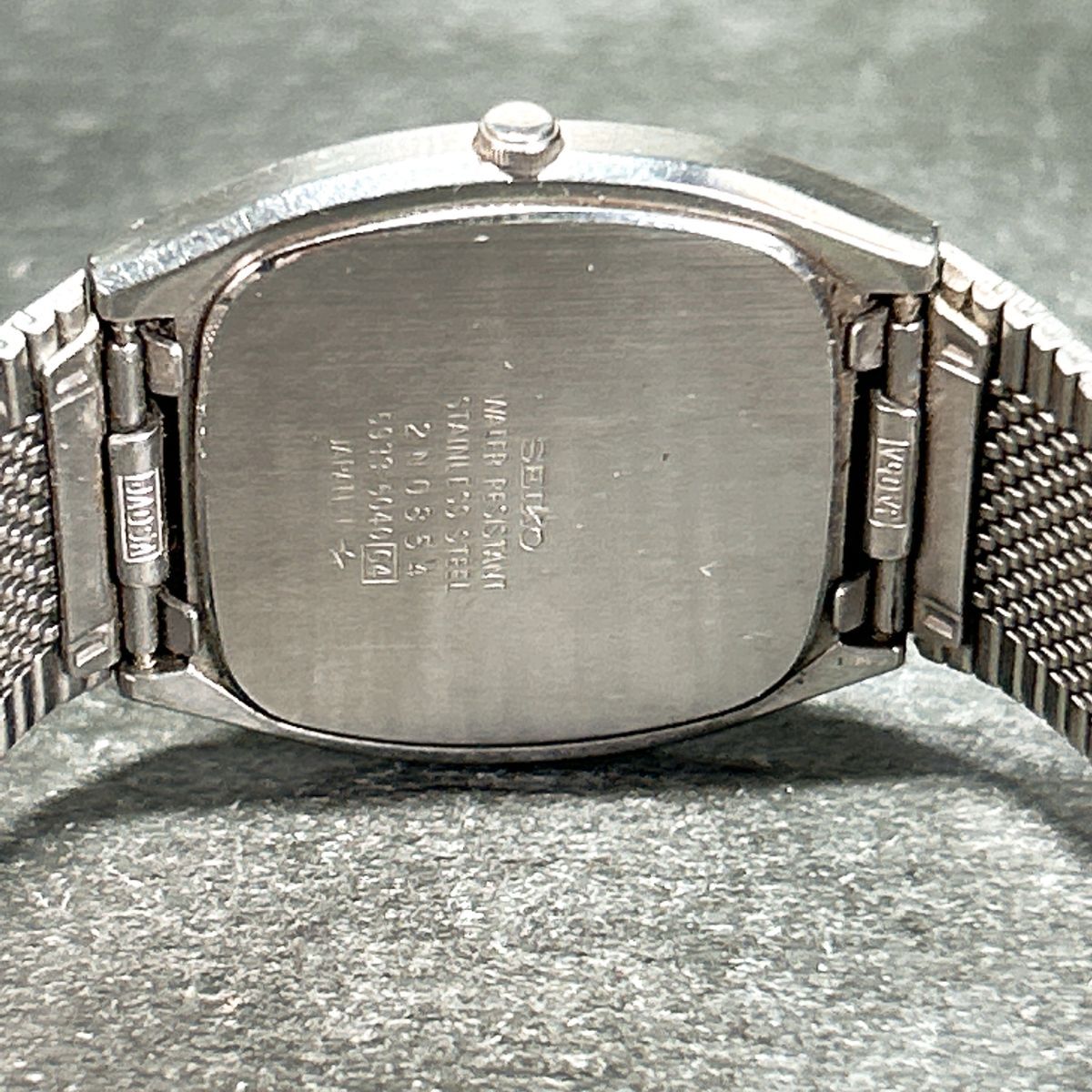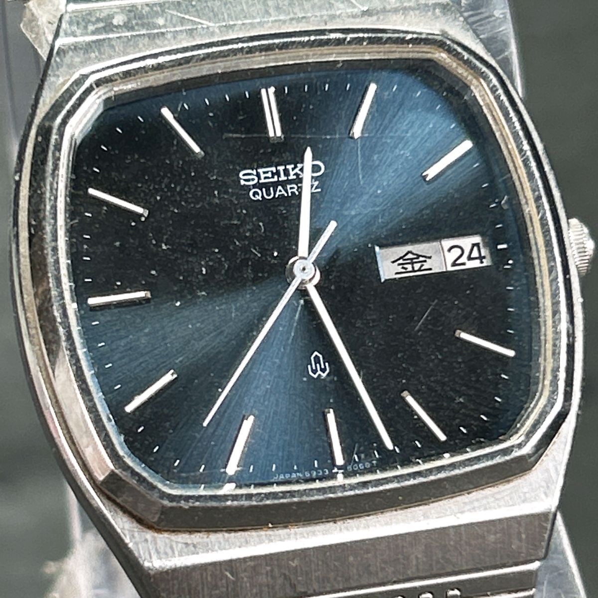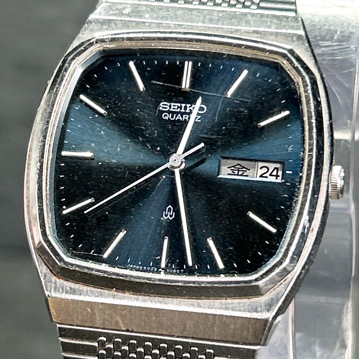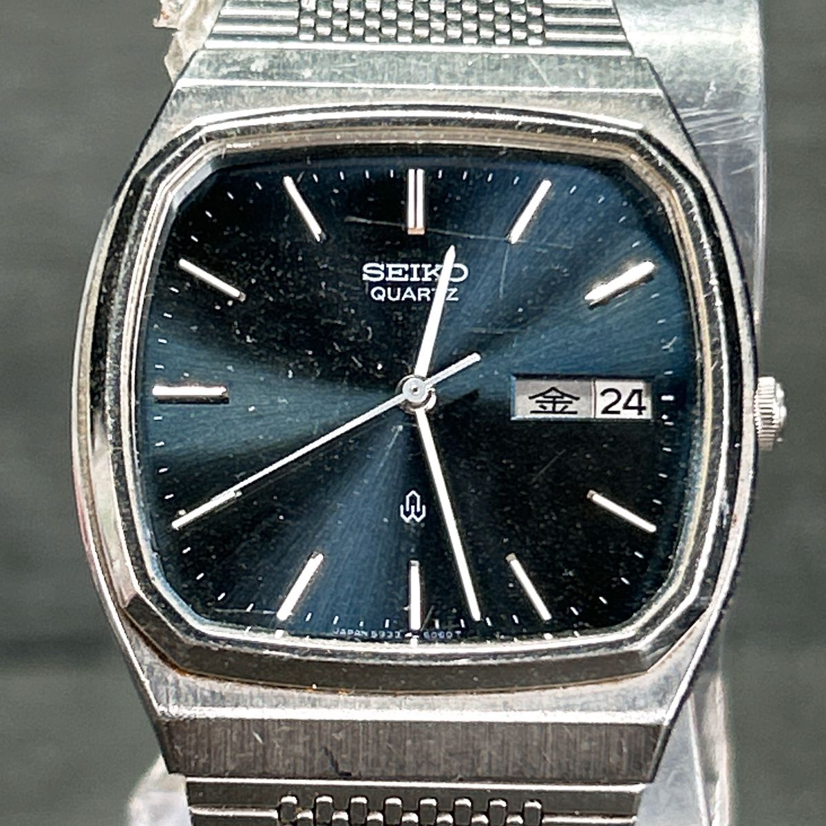 1970年代製 SEIKO セイコー 5933-5040 腕時計 アナログ クオーツ ヴィンテージ 亀戸製 3針 カレンダー ブルー文字盤 スクエア 電池交換済み
