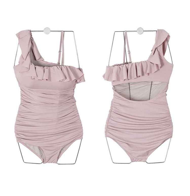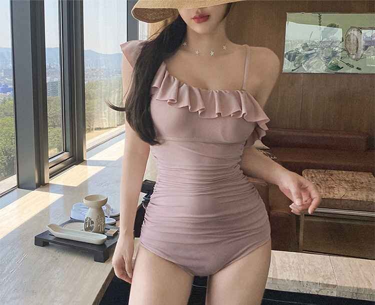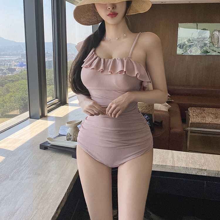 水着 オフショルダー スリム sweet系 フリル かわいい レディース XL ピンク
