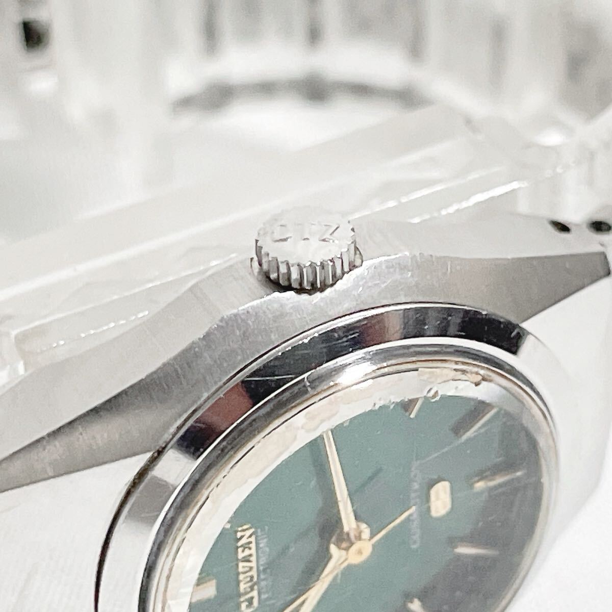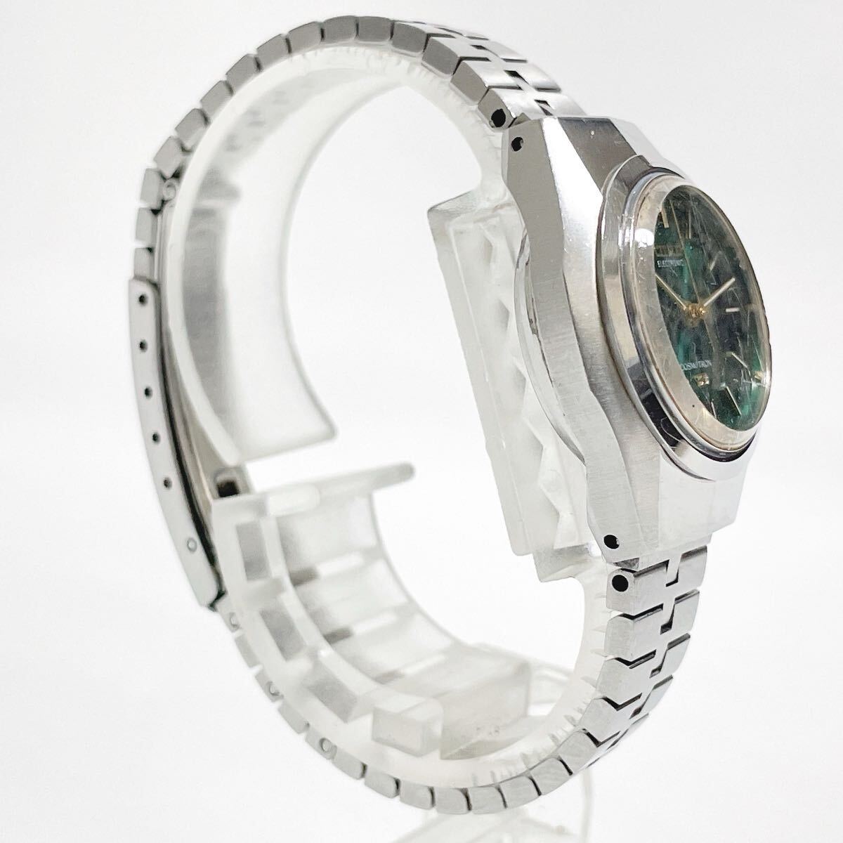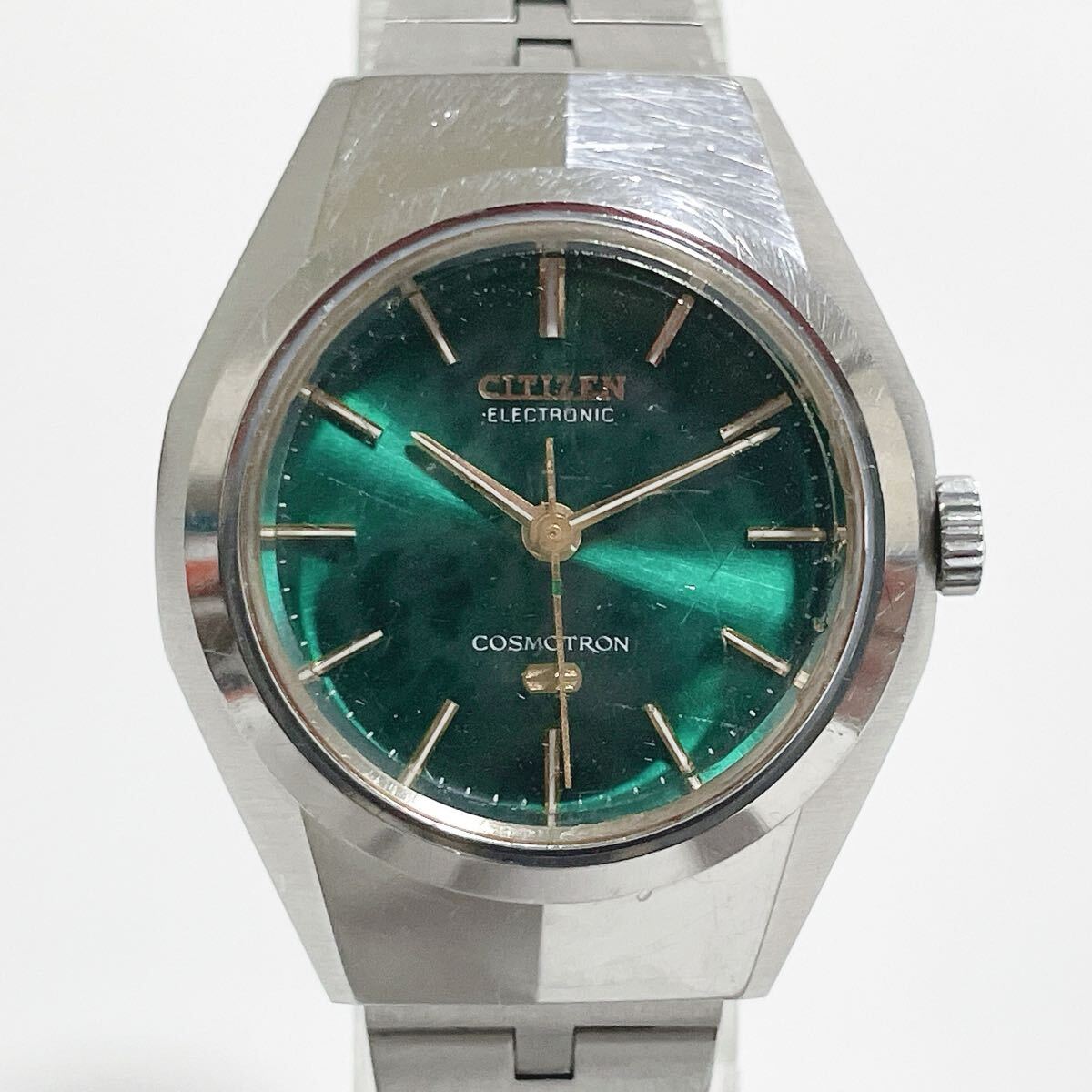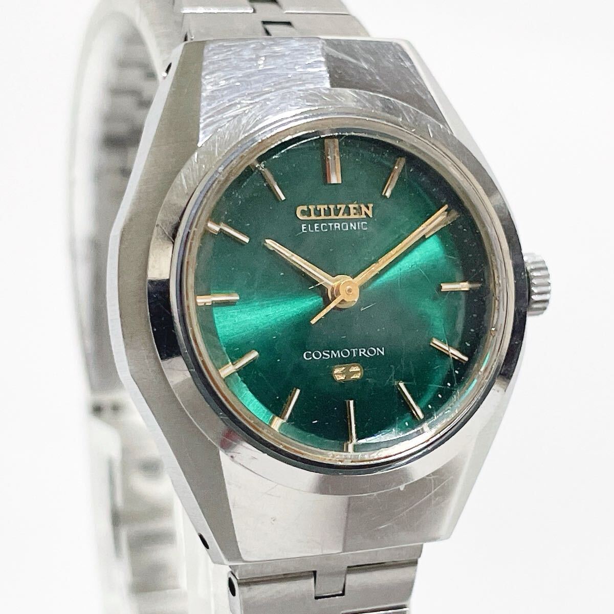 稼働品 CITIZEN シチズン COSMOTRON コスモロトロン ELECTRONIC 電磁テンプ 4-580397 グリーン文字盤 レディース腕時計