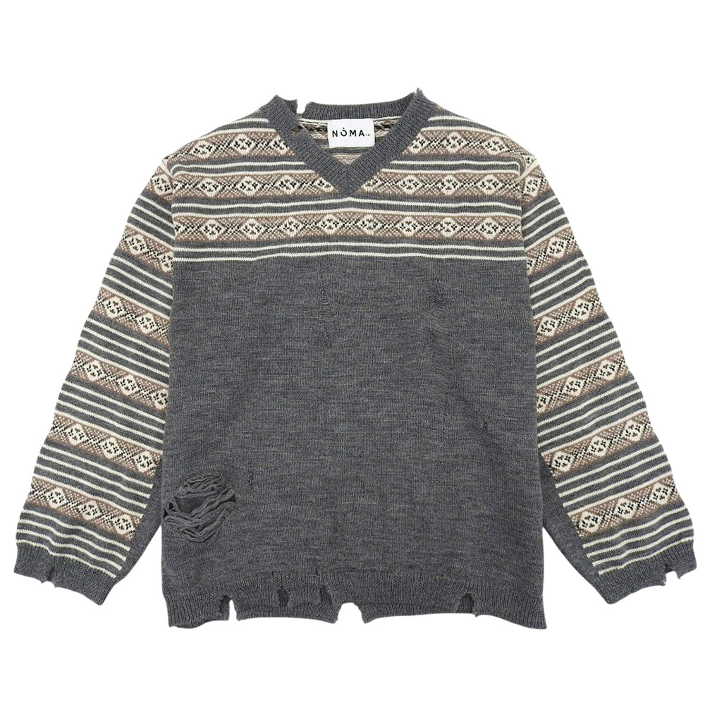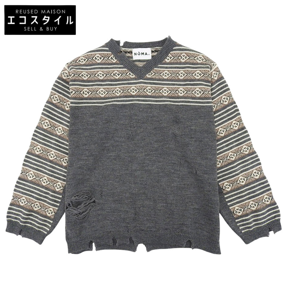 NOMA t.d. ノーマティーディー Fair isle Damaged Sweater トップス メンズ グレー 3 23AW