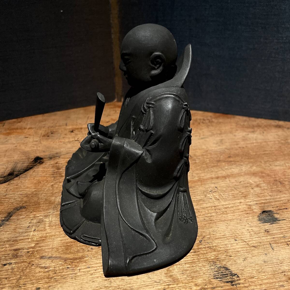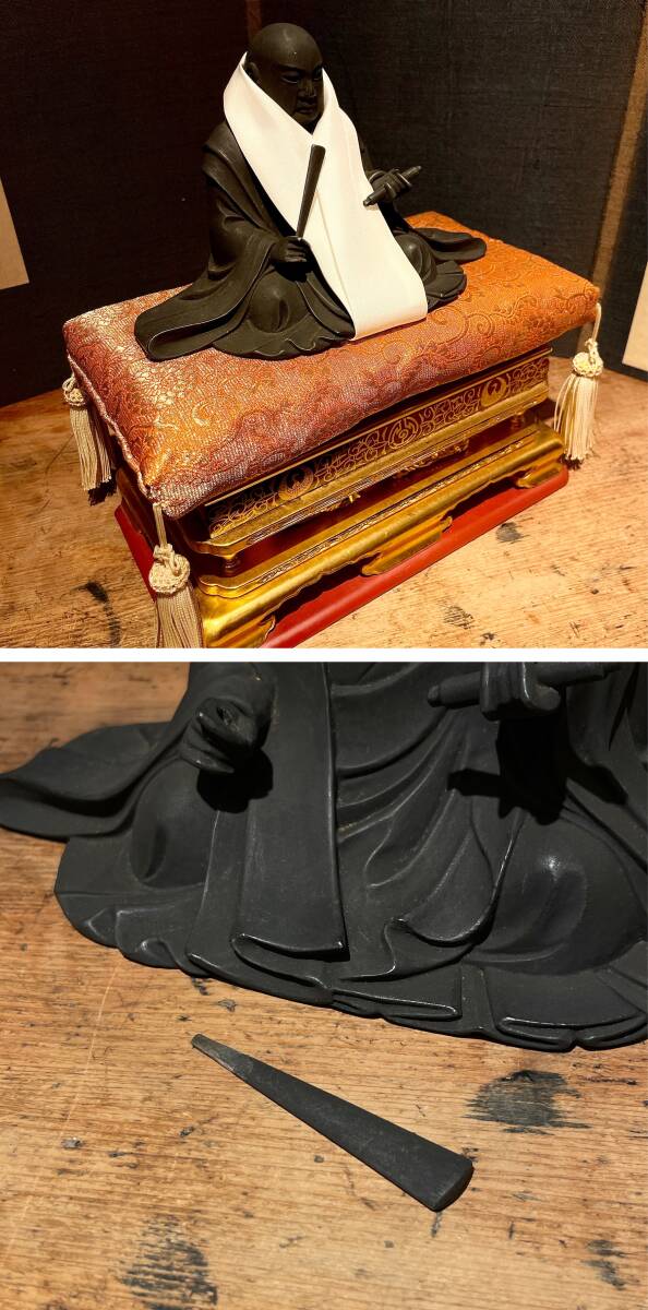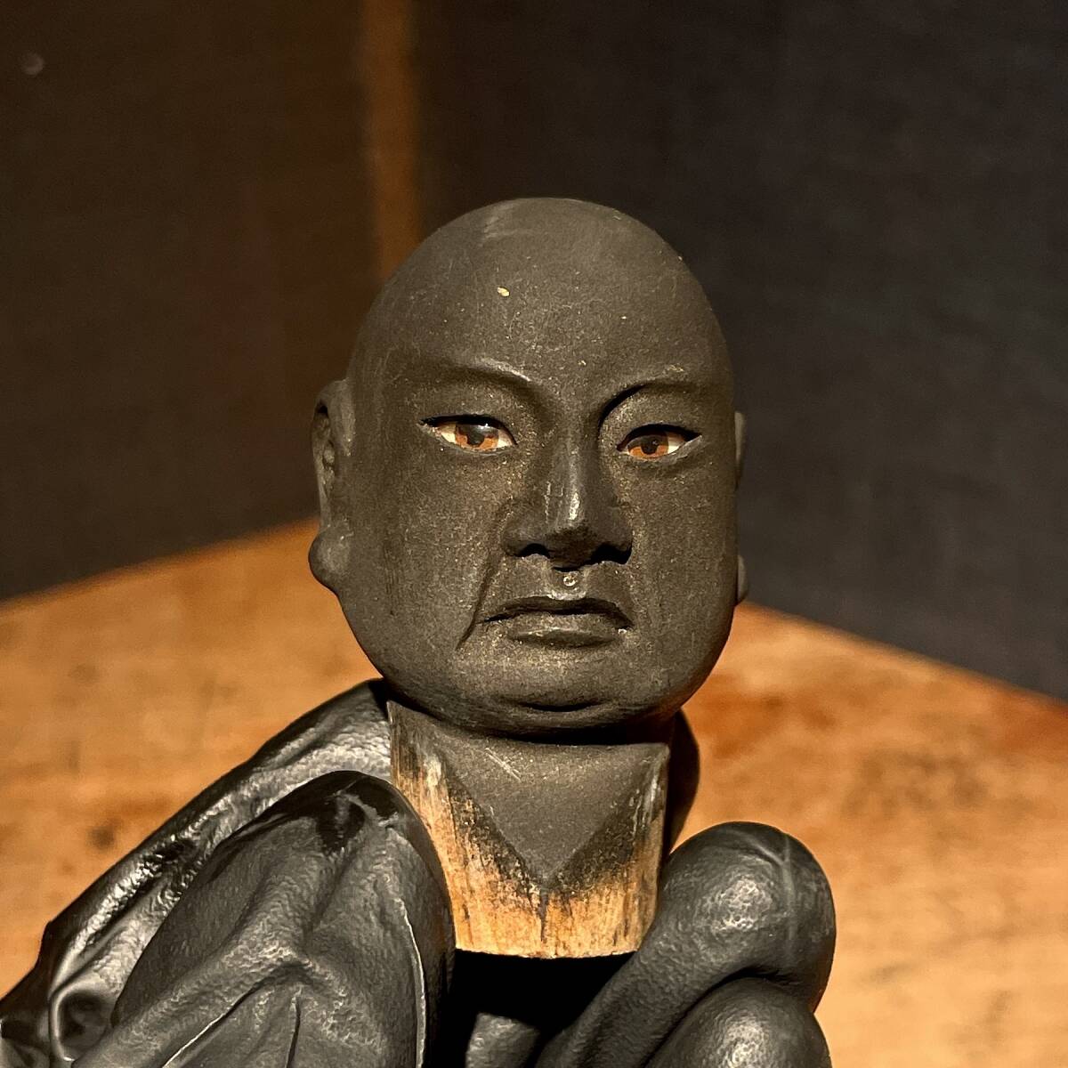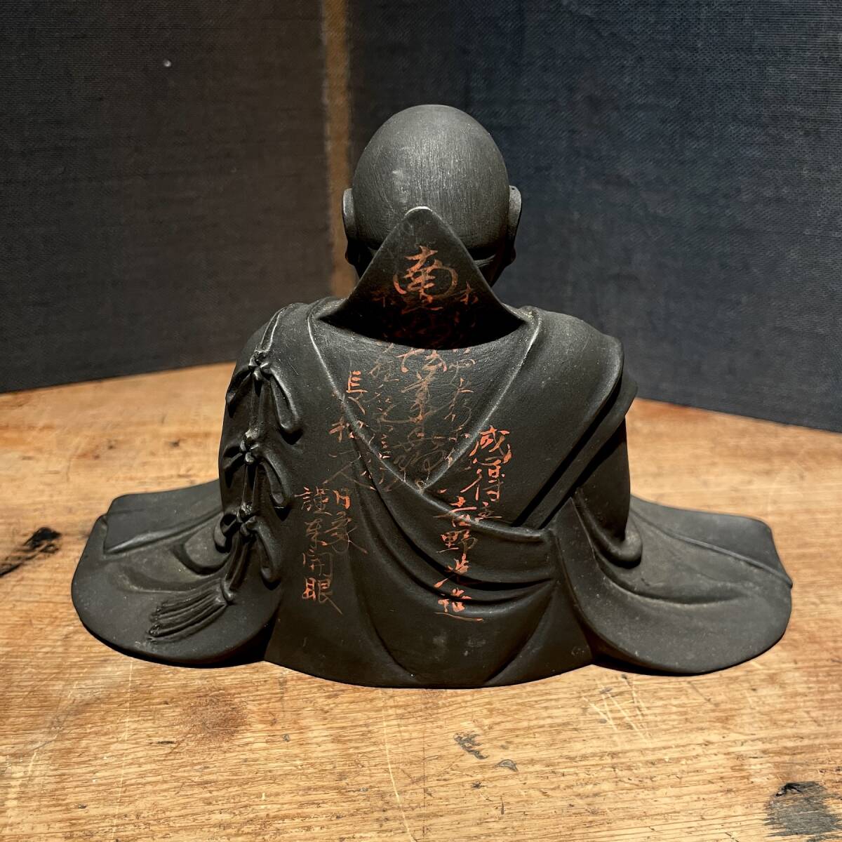 木彫 日蓮聖人坐像 「日象(井上日召)勤奉開眼」の朱字書入 玉眼象眼 状態良好 台座■血盟団 日蓮宗 座像 仏像 仏教美術 骨董古美術■a821