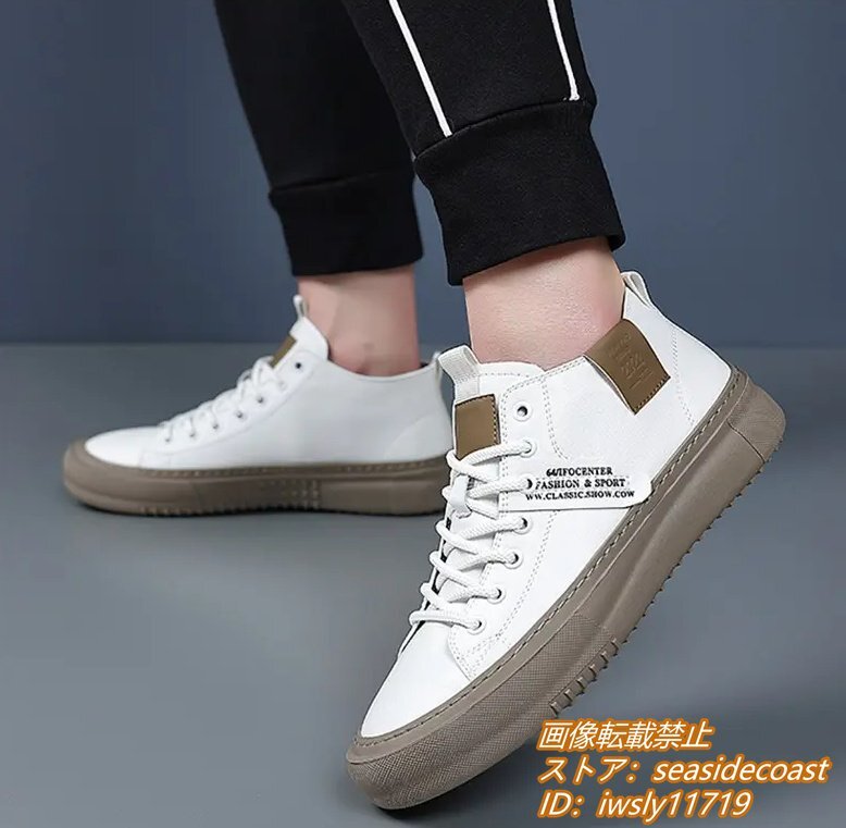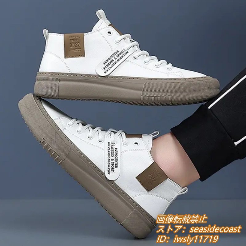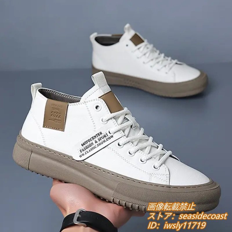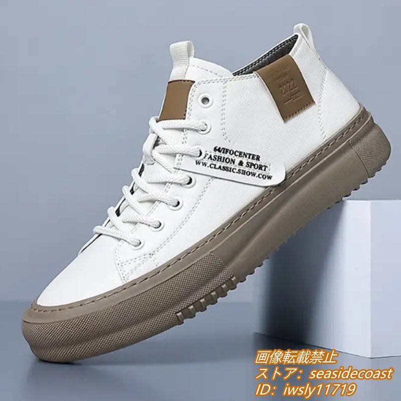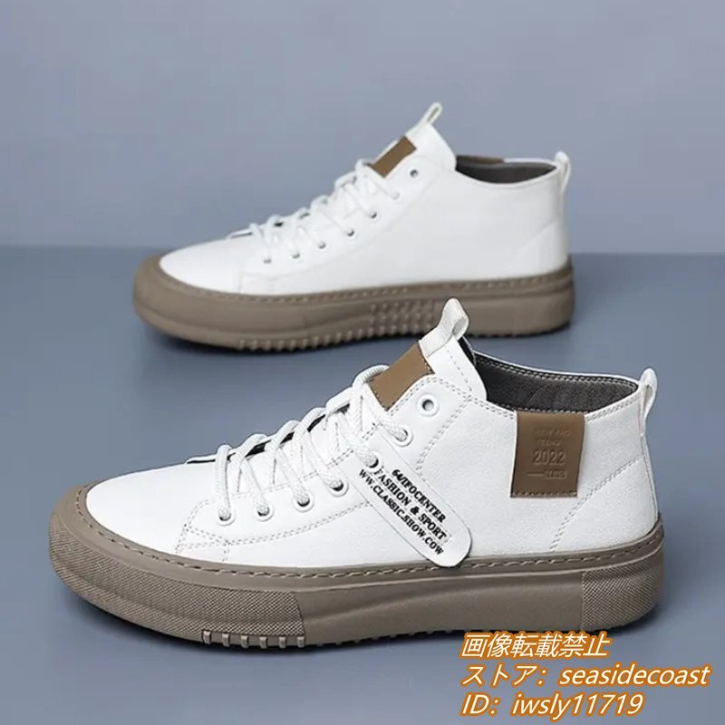 高品質★スニーカー 本革 メンズシューズ ハイカット 手作り 牛革 レザーシューズ ドライビングシューズ ローファー 軽量 ホワイト 26.0cm