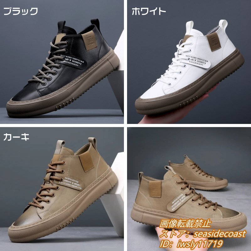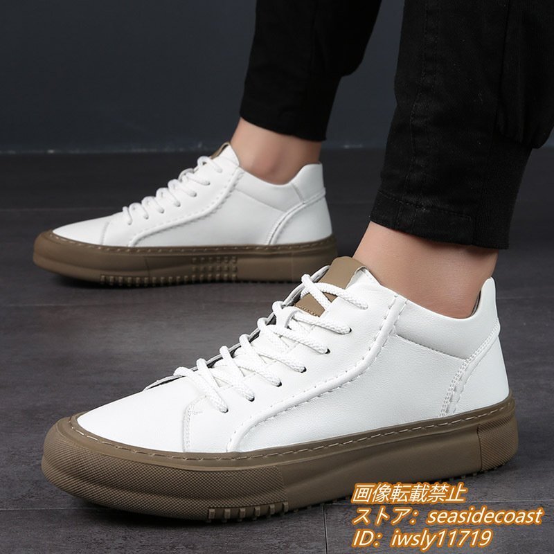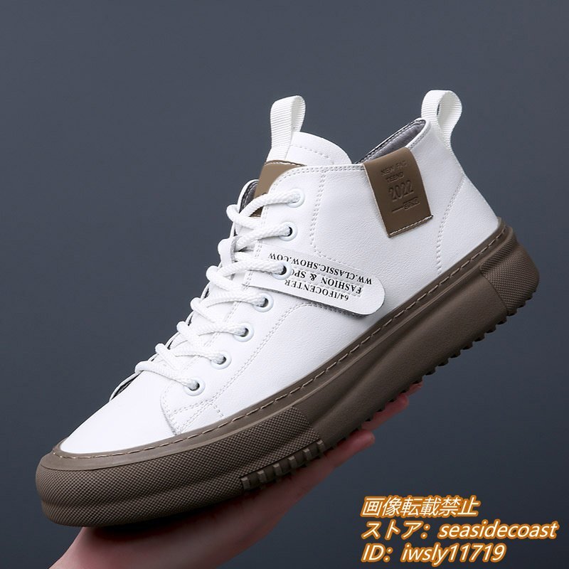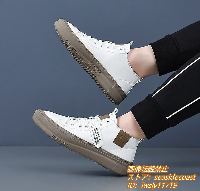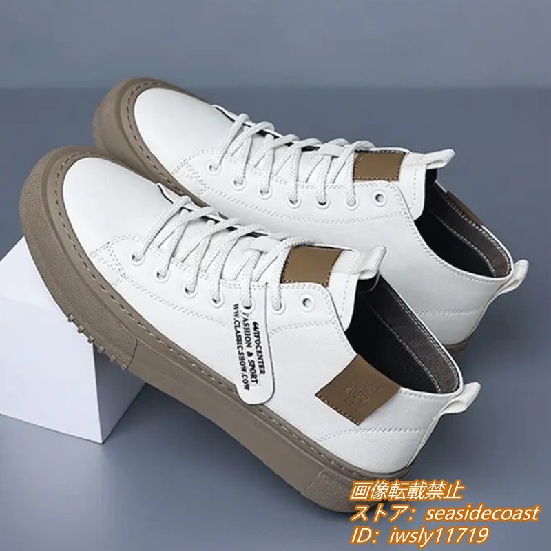 高品質★スニーカー 本革 メンズシューズ ハイカット 手作り 牛革 レザーシューズ ドライビングシューズ ローファー 軽量 ホワイト 26.0cm