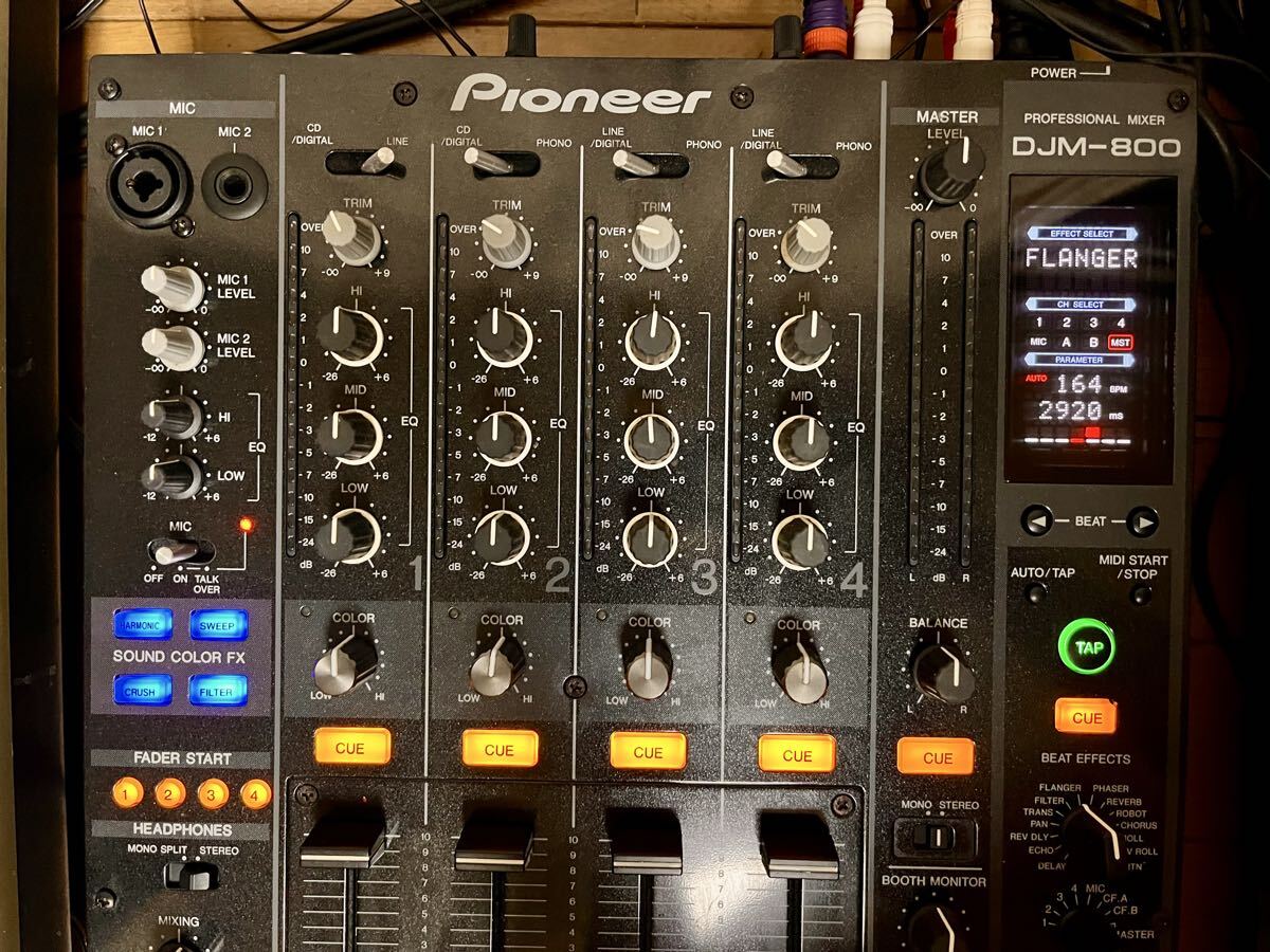 フルデジタル4CHミキサー、DJM-800!大型クラブなどはまず置いてあるような定番中の定番。音質はさすがPIONEER!2種類のエフェクターも充実すぎ