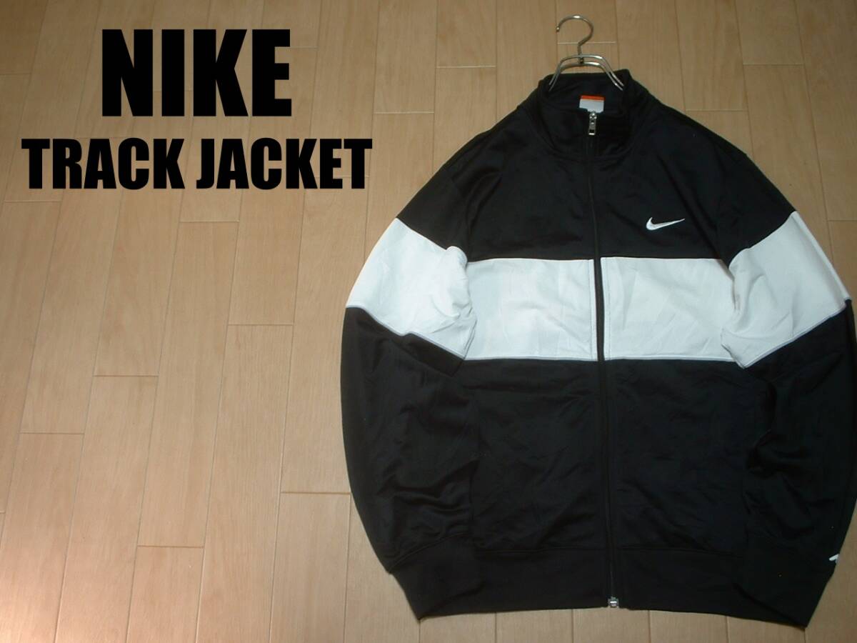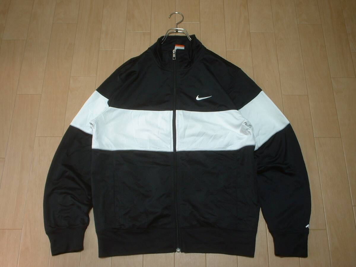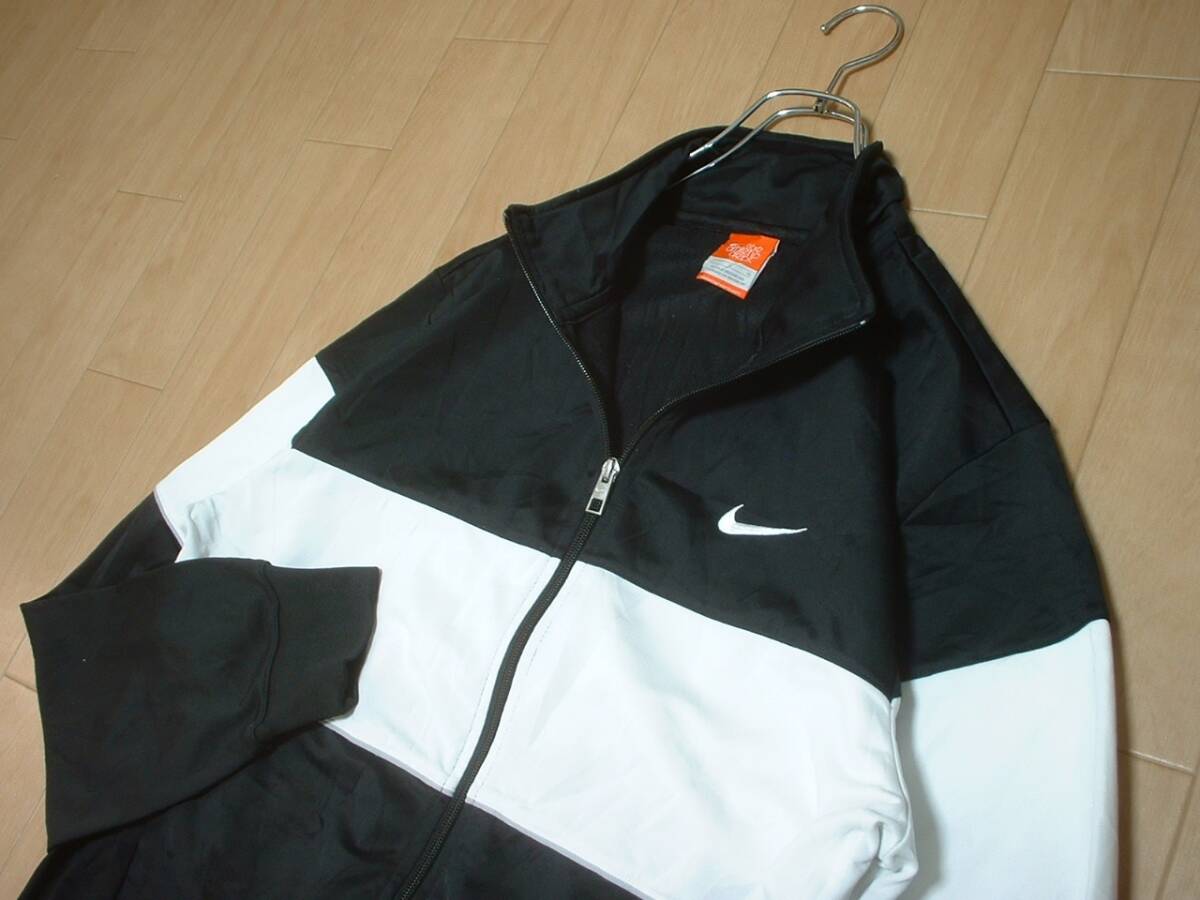 NIKEワンポイントスウッシュ刺繍トラックジャケットL黒ブラックx白ホワイト正規ナイキバイカラージャージトップSWOOSHスウォッシュ