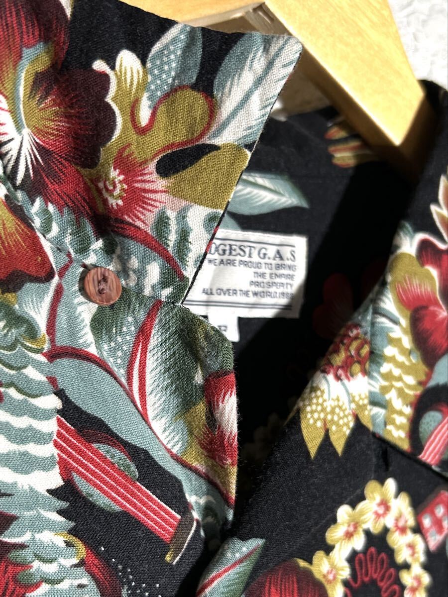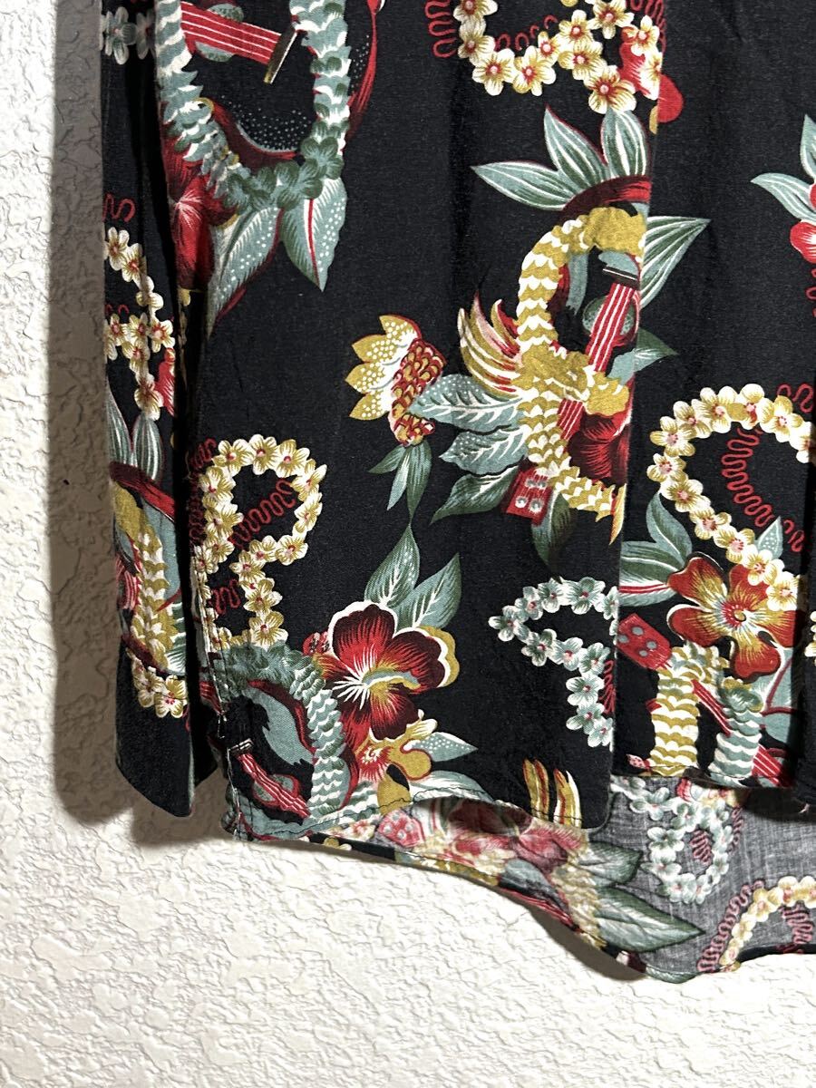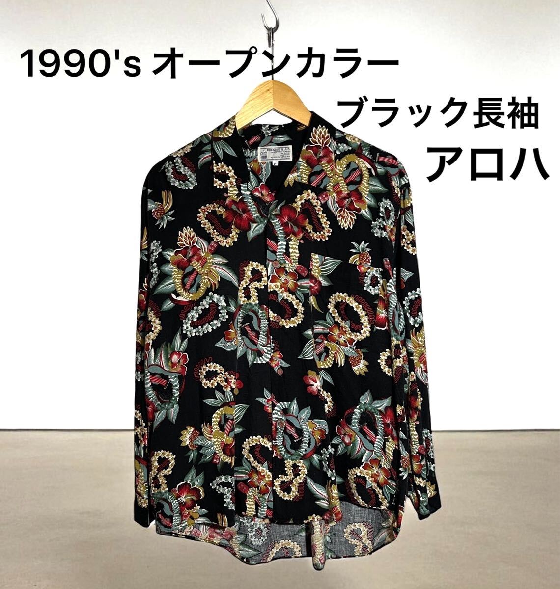 1990's ヴィンテージ 長袖 オープンカラー ハワイアン アロハ シャツ ブラック 黒 ラハイナ コットン 1950's アメリカ USA レーヨン 古着