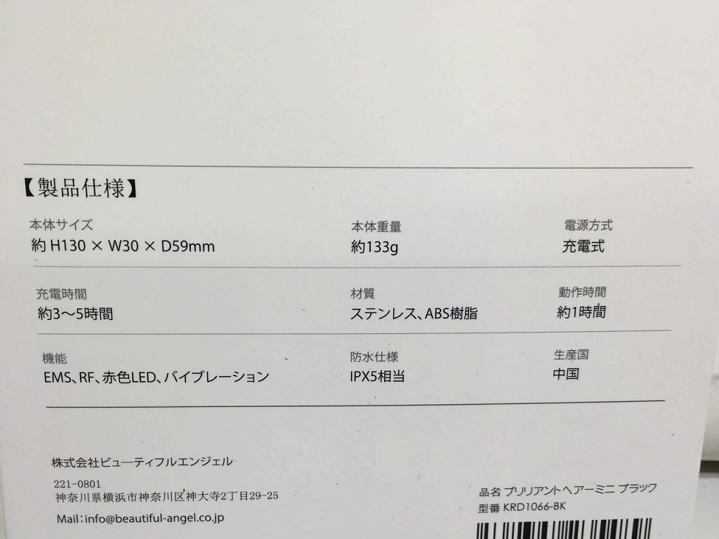 【未使用】 ビューティフルエンジェル ビューティフルエンジェル 美ルル ブリリアントヘアーミニ KRD1066-BK