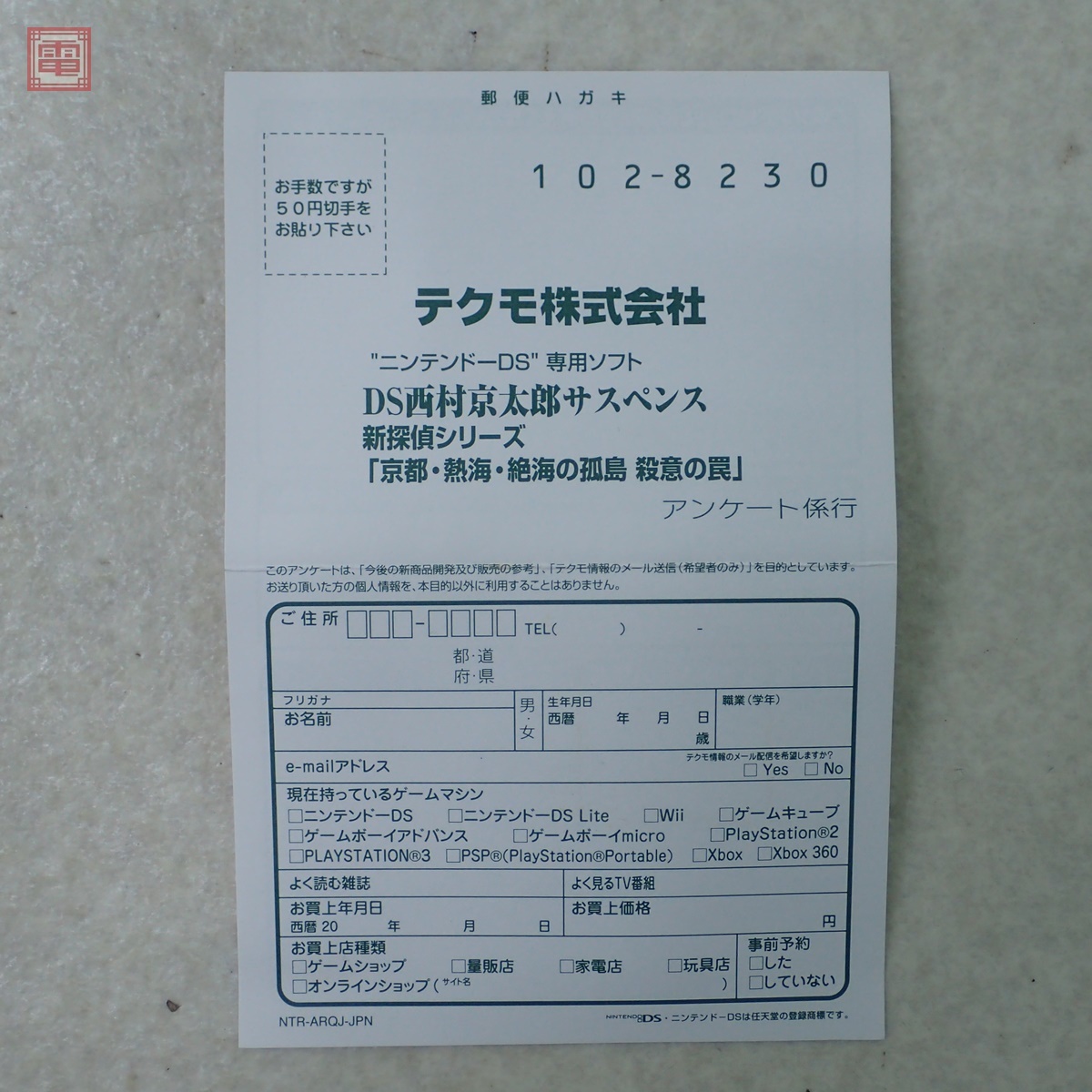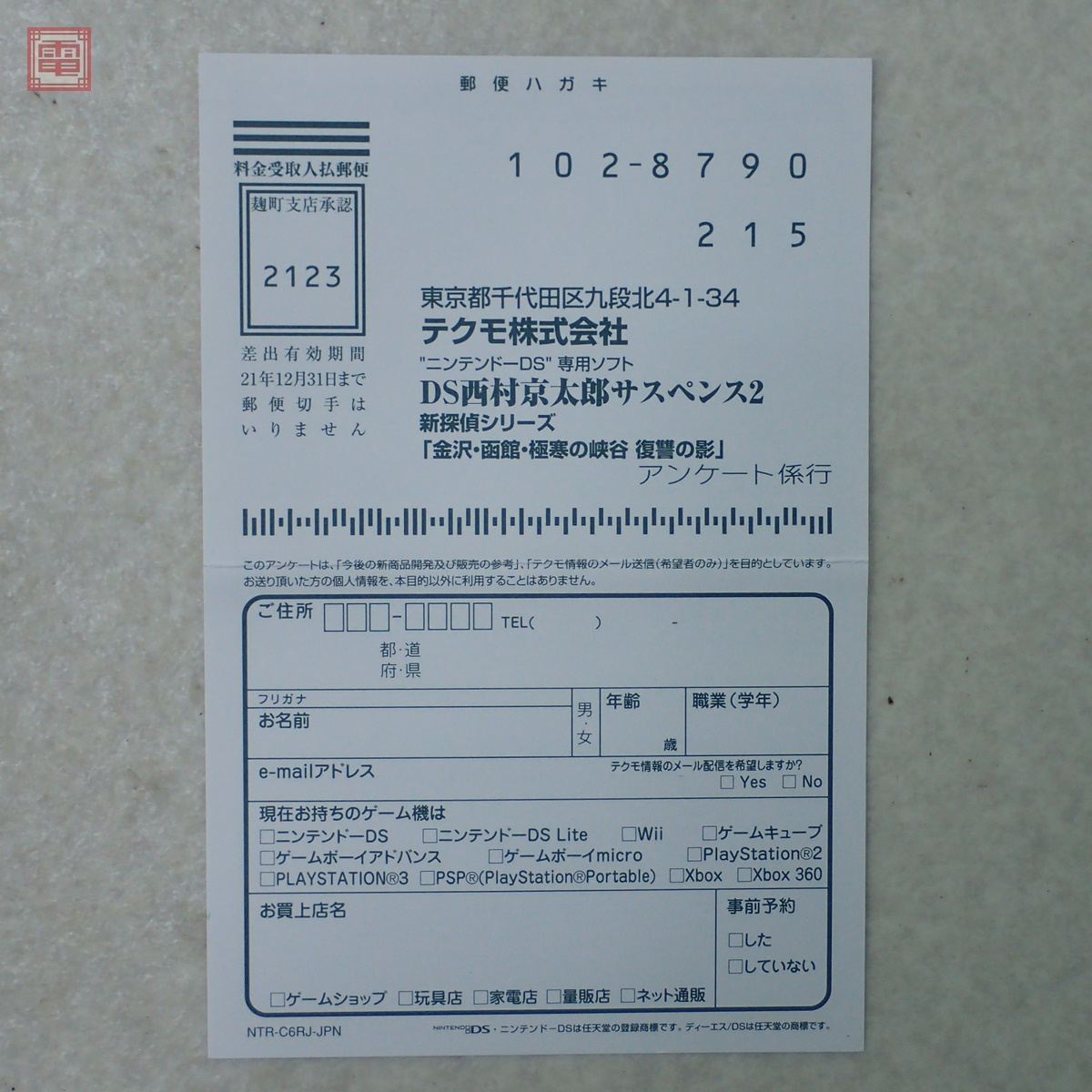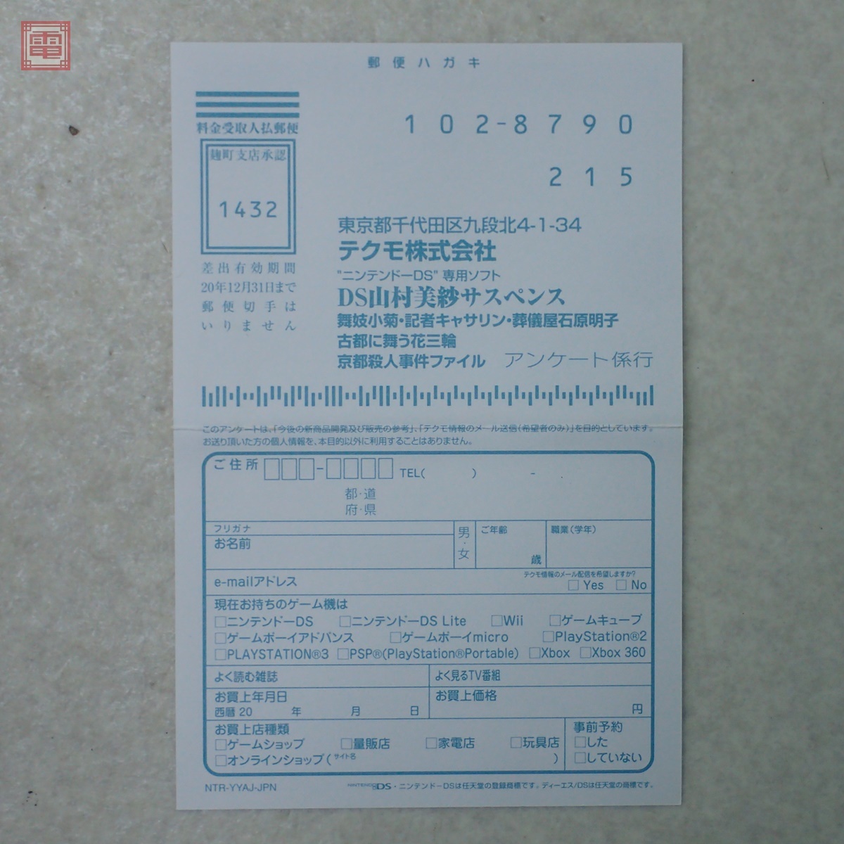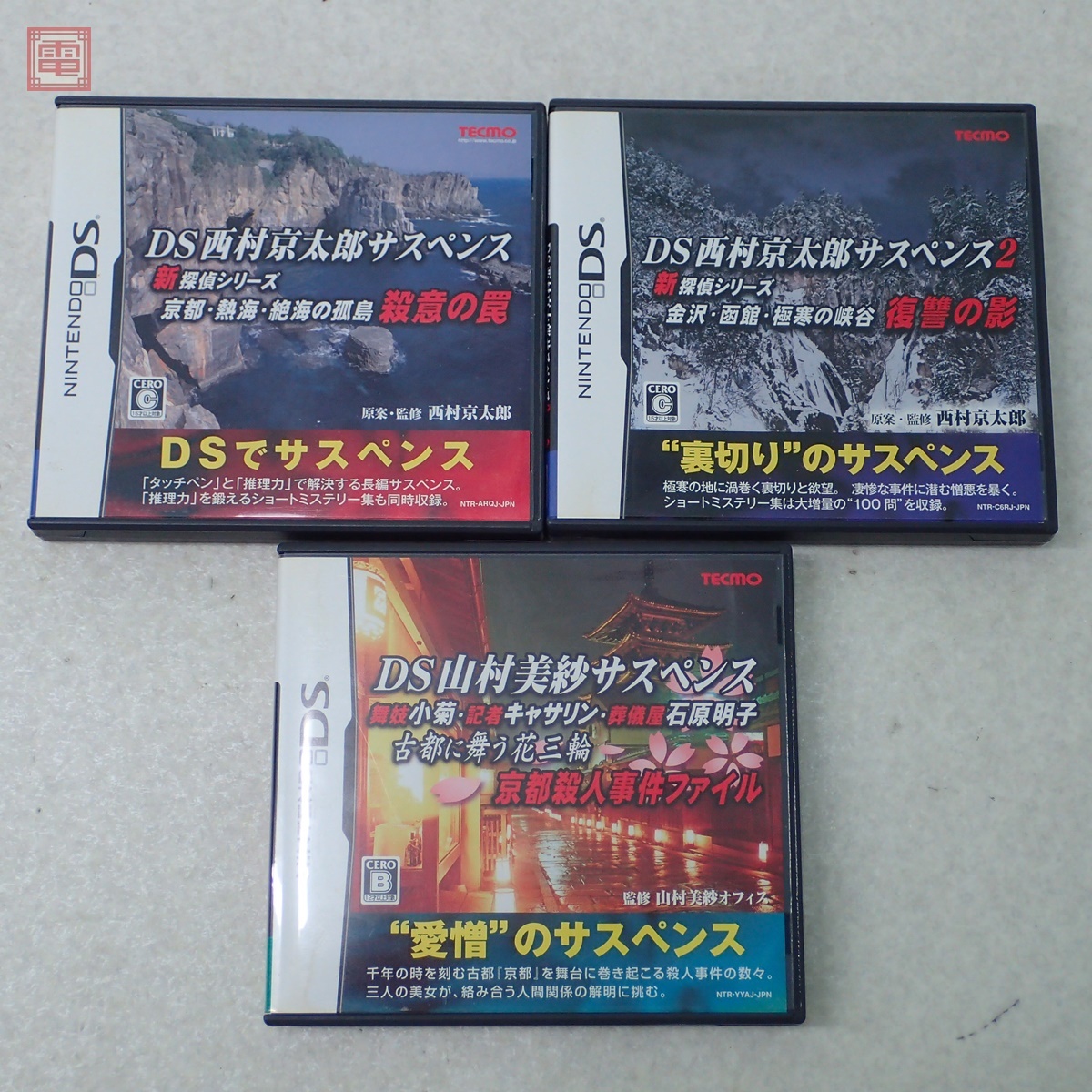 動作保証品 ニンテンドーDS DS西村京太郎サスペンス/2/山村美紗サスペンス まとめて 3本セット 箱説付 こちらの商品は動作保証品となりますので、一週間の動作保証をお付けします。 ■スレ、キズ、汚れ、イタミ、ヤケなどがあります。 ■画像、記載以外のダメージがある可能性があります。予めご了承ください。 ■写真のものが全てです。付属物の有無や状態については写真からご判断ください。 ■チェックに使用したモニターやチェック機器等は、特に表記がない限りは付属いたしません。 ■商品到着後、当店の保証期間中は、商品及び箱や取説、付属品などを1つでも廃棄や破損をしないようにお願い致します。廃棄や破損をした場合、商品に問題があった場合でも対応や返金などの対処ができなくなります。 | |||