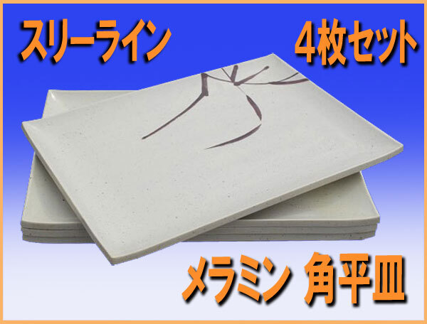 | wz4545 スリーライン メラミン 角平皿 和食器 食器 4枚セット 中古 厨房 飲食店 居酒屋 和食屋 |