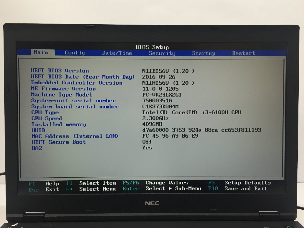 ジャンク/ NEC PC-VK23LXZGT Intel Core i3-6100U メモリ4.1GB ストレージ無し 【K21963】