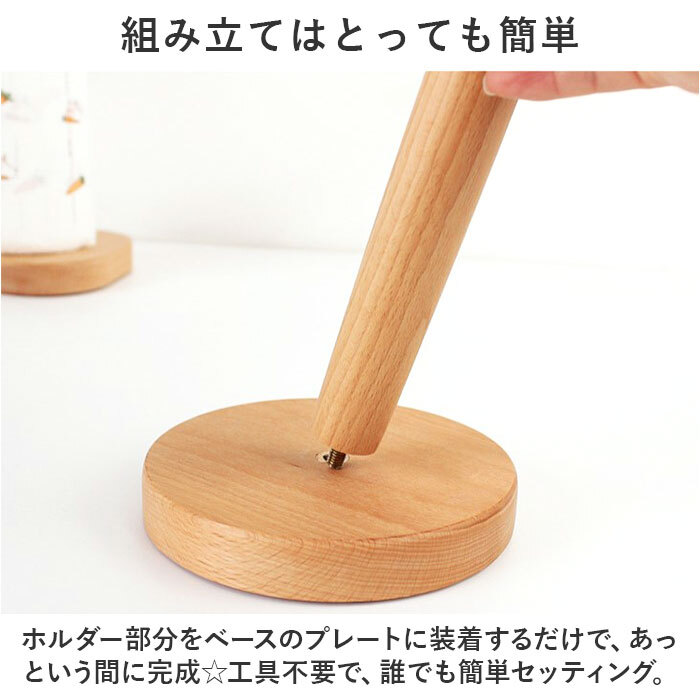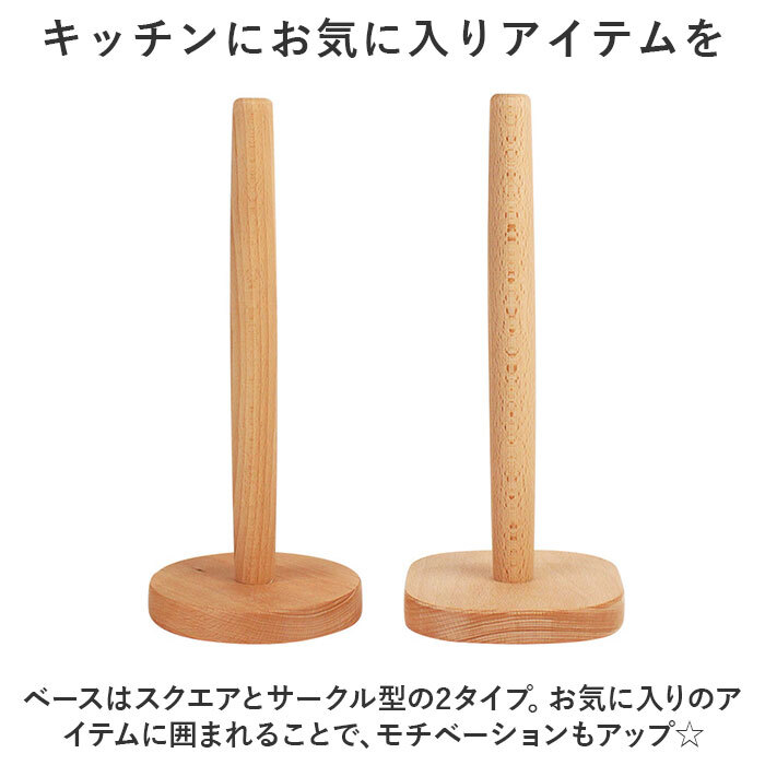 商品説明 | ・・キッチンに温かみを♪調理中もペーパーをサッと手に取れる「木製キッチンペーパーホルダー」が新登場。 ・【ナチュラルな仕上がり】 ・自然な風合いを楽しめる木製ホルダー。キッチンの雰囲気を邪魔することなく、空間に素敵にマッチ◎ ・【組み立てはとっても簡単】 ・ホルダー部分をベースのプレートに装着するだけで、あっという間に完成☆工具不要で、誰でも簡単セッティング。 ・【色んな場所に常備OK】 ・キッチンの作業台はもちろん、ダイニングテーブルなどにも置きやすいサイズ感。いつでも手に取れる位置に♪ ・【安心の滑り止め付き】 ・ベースの底面四隅にクッション材を配置。滑りや傷つきをガード。 ・【キッチンにお気に入りアイテムを】 ・ベースはスクエアとサークル型の2タイプ。お気に入りのアイテムに囲まれることで、モチベーションもアップ☆ |