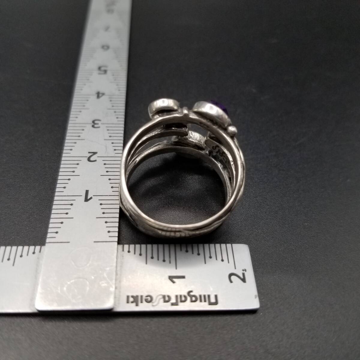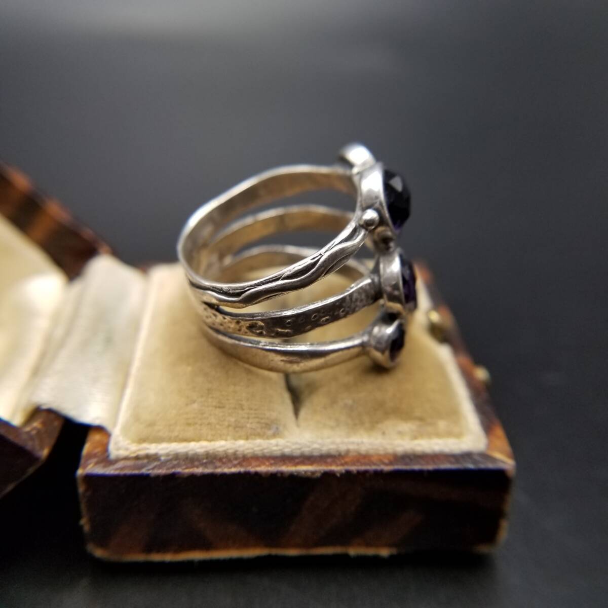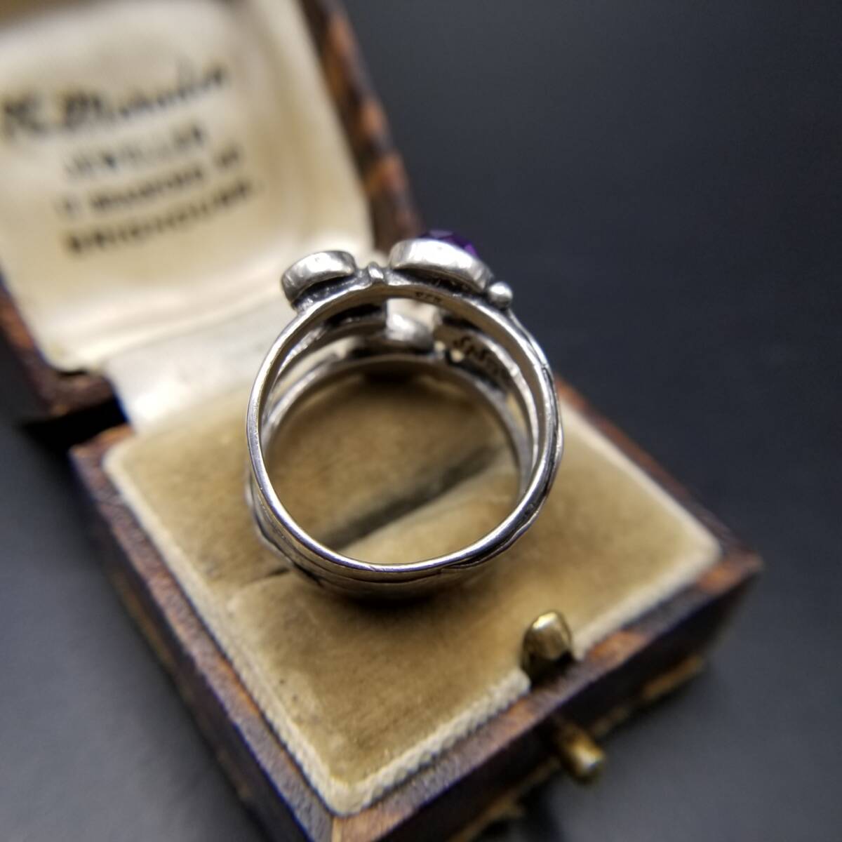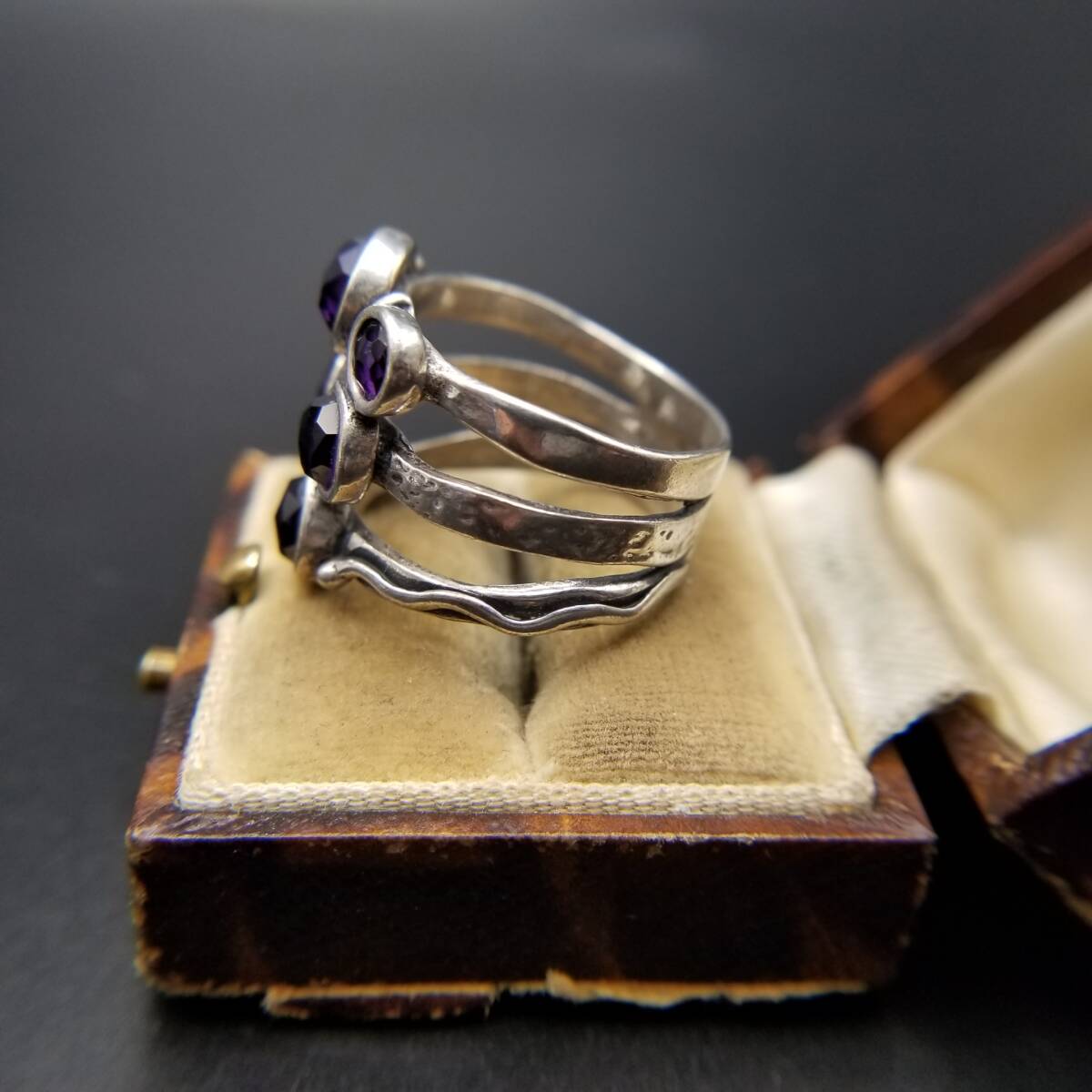 Didae イスラエル ヴィンテージ 紫石 3連バンド 925 シルバー リング 指輪 銀 極幅広 存在感 ステートメントジュエリー 大きめサイズ R16-Q