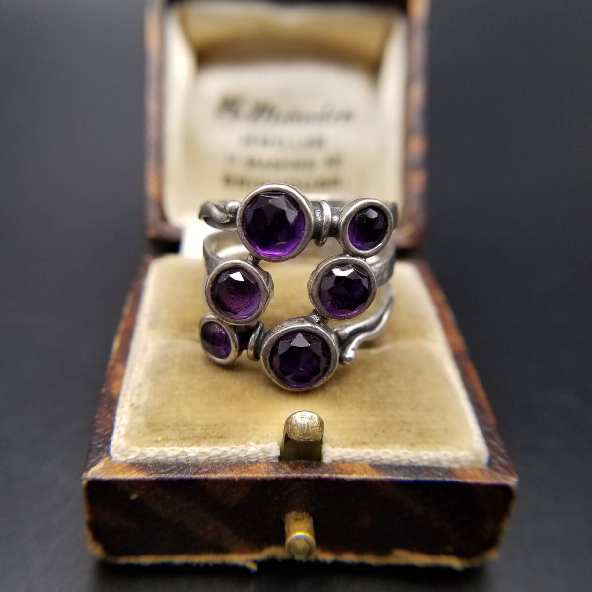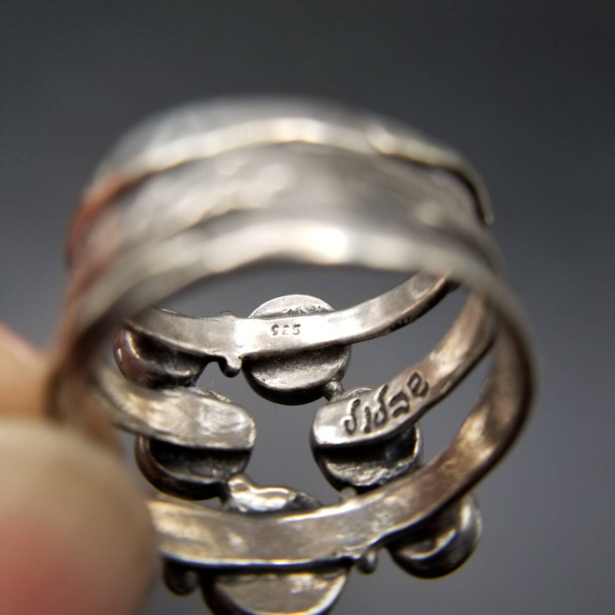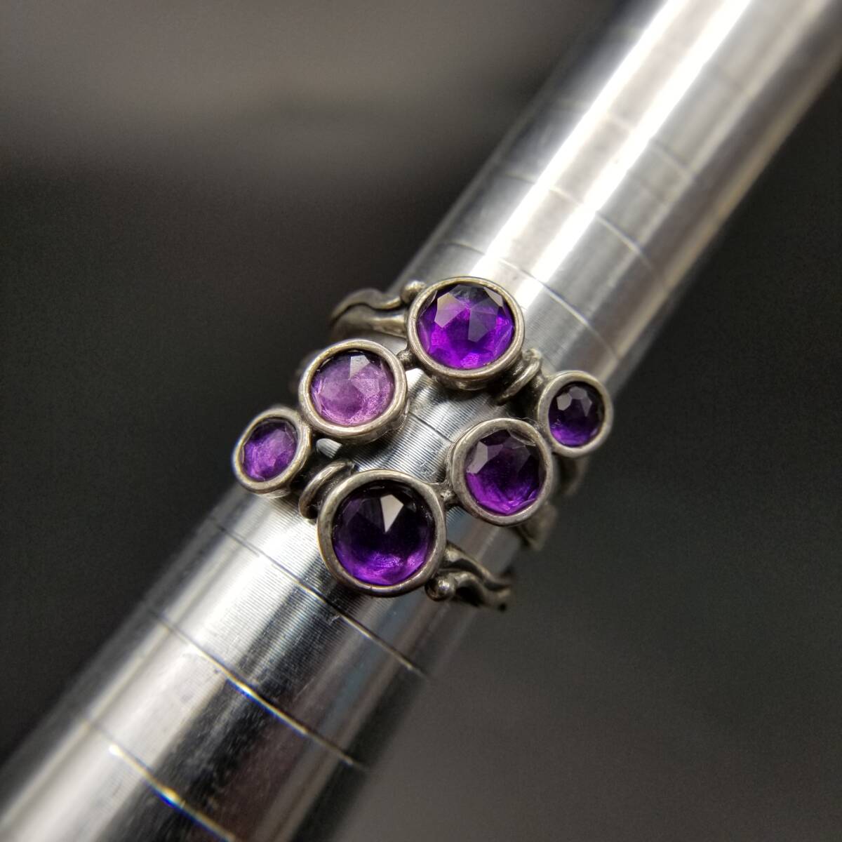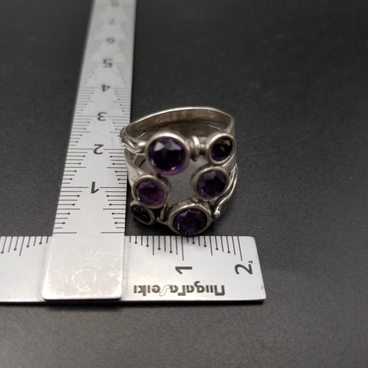 Didae イスラエル ヴィンテージ 紫石 3連バンド 925 シルバー リング 指輪 銀 極幅広 存在感 ステートメントジュエリー 大きめサイズ R16-Q