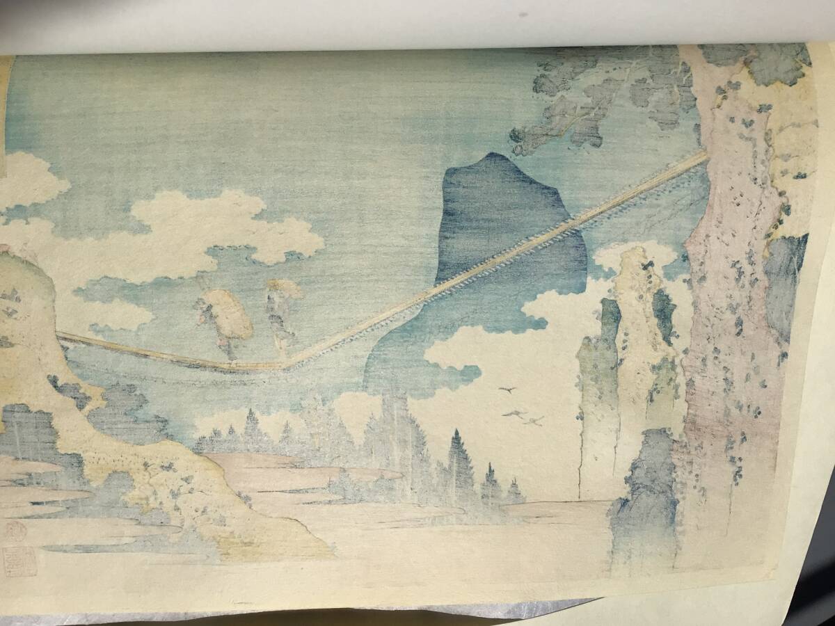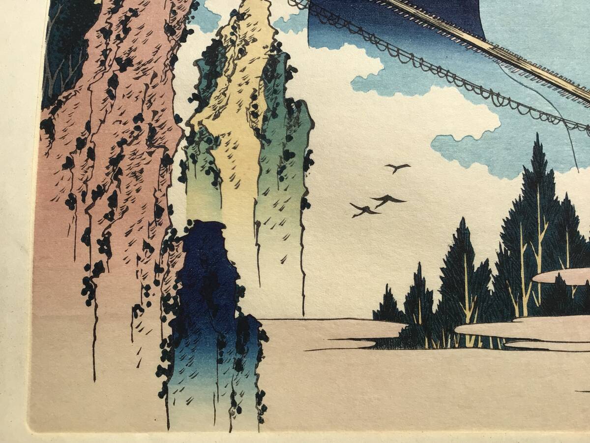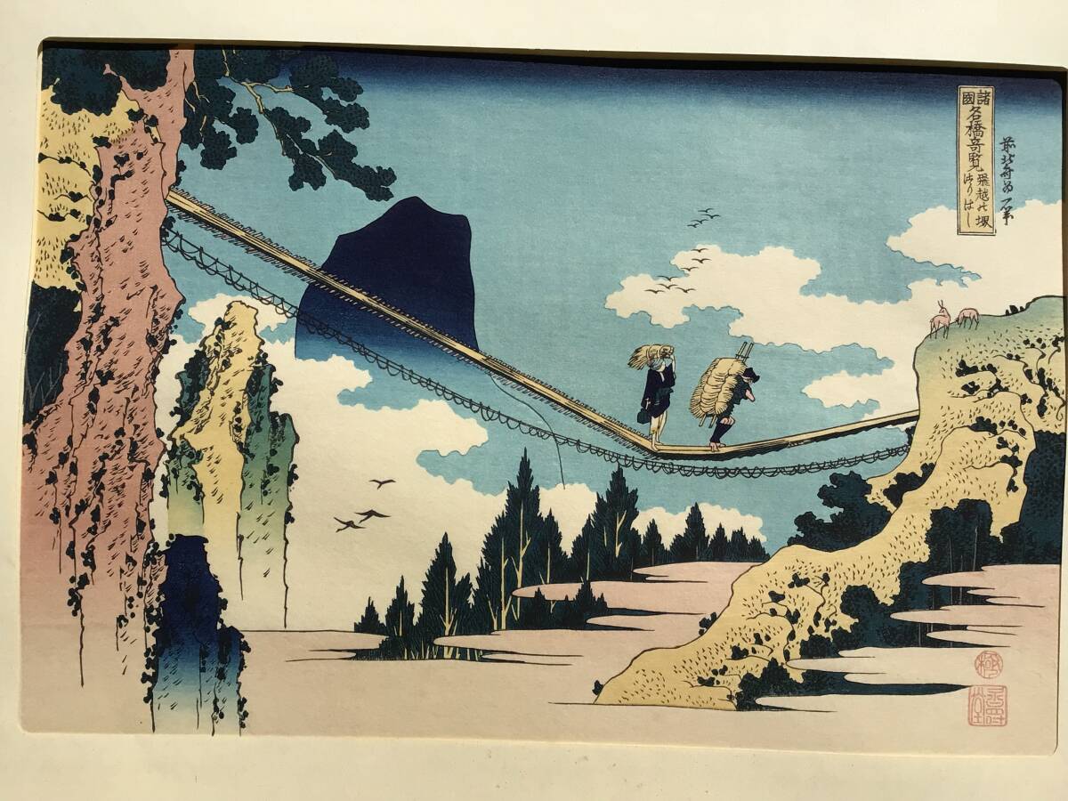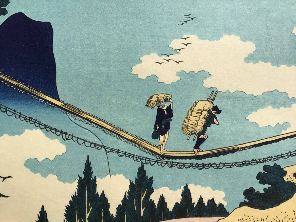 【複製木版画】A⑪北斎諸国名所図会『諸国名橋奇覧 飛越の堺 つりはし』葛飾北斎 手摺木版画 創作版画 名所絵 浮世絵 岐阜 富山