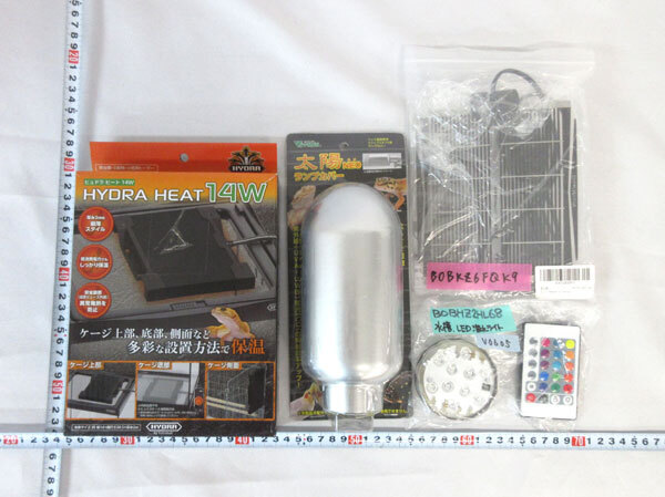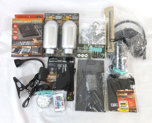 内 容 | ■飼育用品 ・水槽用 LED ※電池部分にサビあり ・爬虫類用 クリップスタンドランプカバー ・爬虫類用 レプタイルヒート XS 他 |
