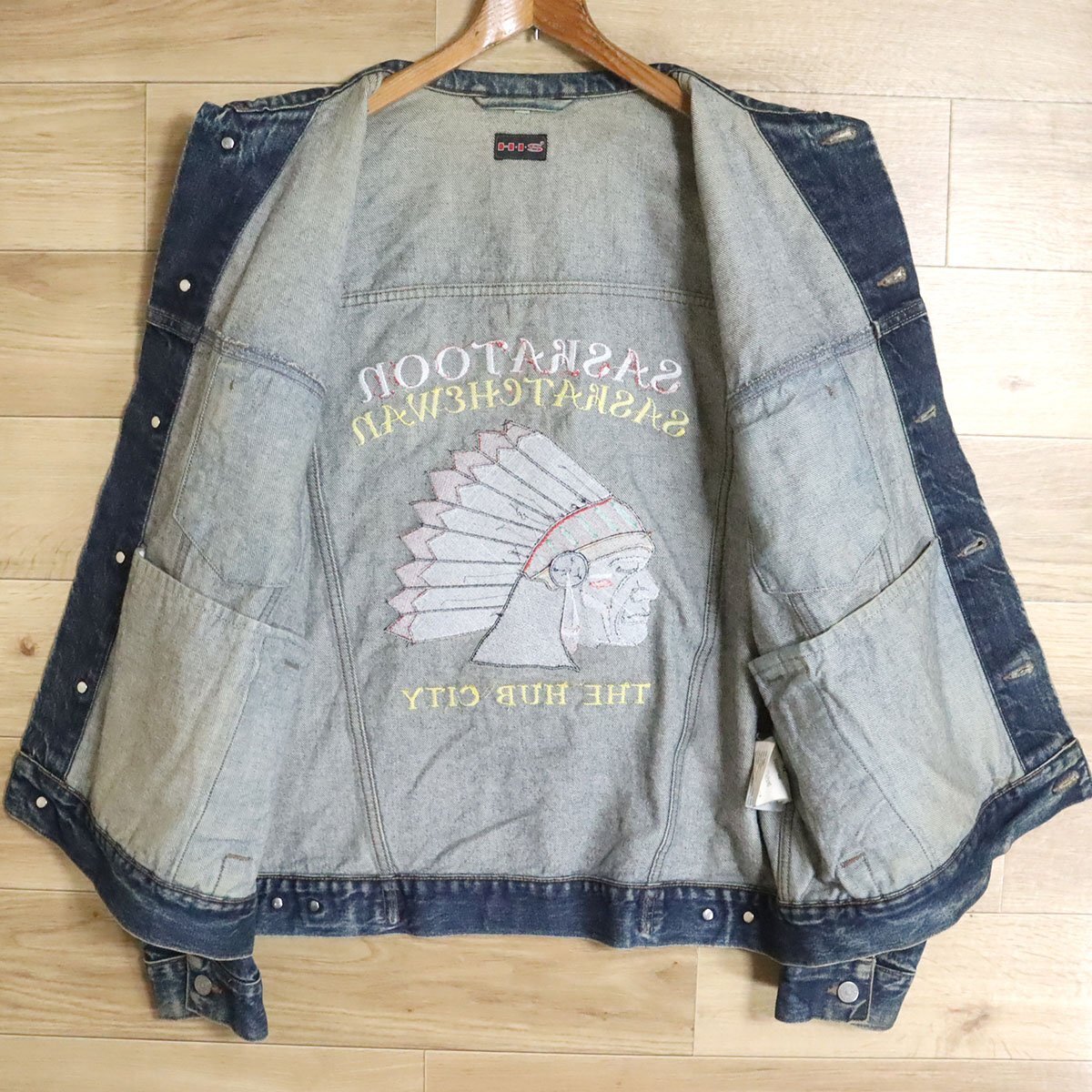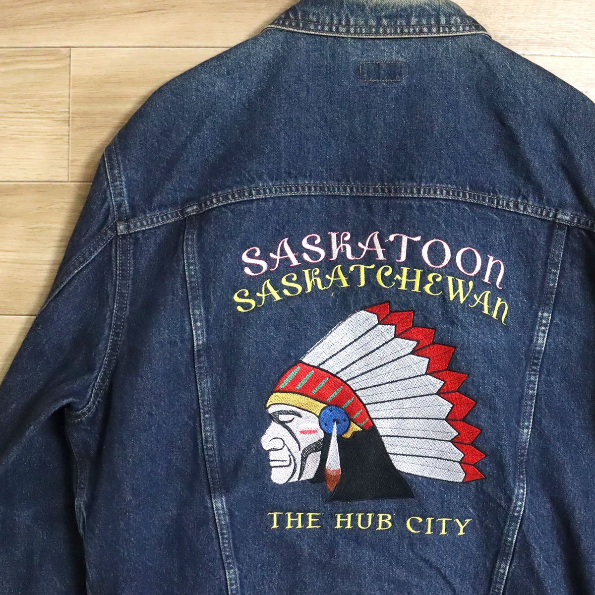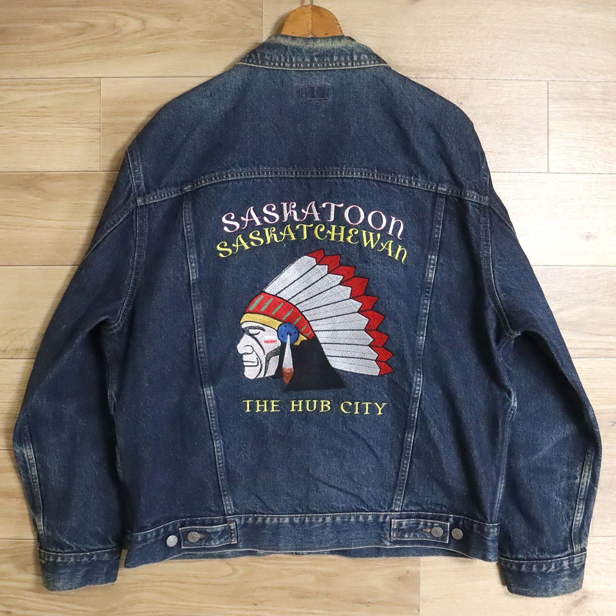H6T/D9.22-6 アメリカ古着 HIS ジージャン XL メンズ バック刺繍 インディアン デニムジャケット ジャンパー ブルゾン