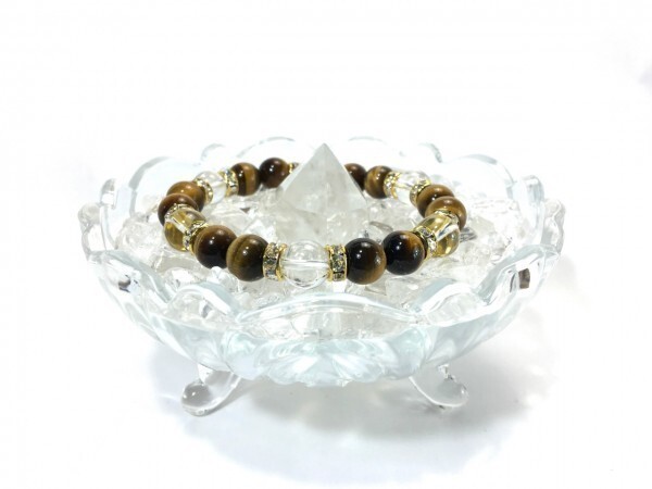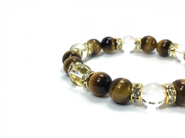 タイガーアイ×水晶 パワーストーン ブレスレット 天然石ブレス 10mm (ロンデル:ゴールド) メンズ・レディース 男性・女性 浄化済み