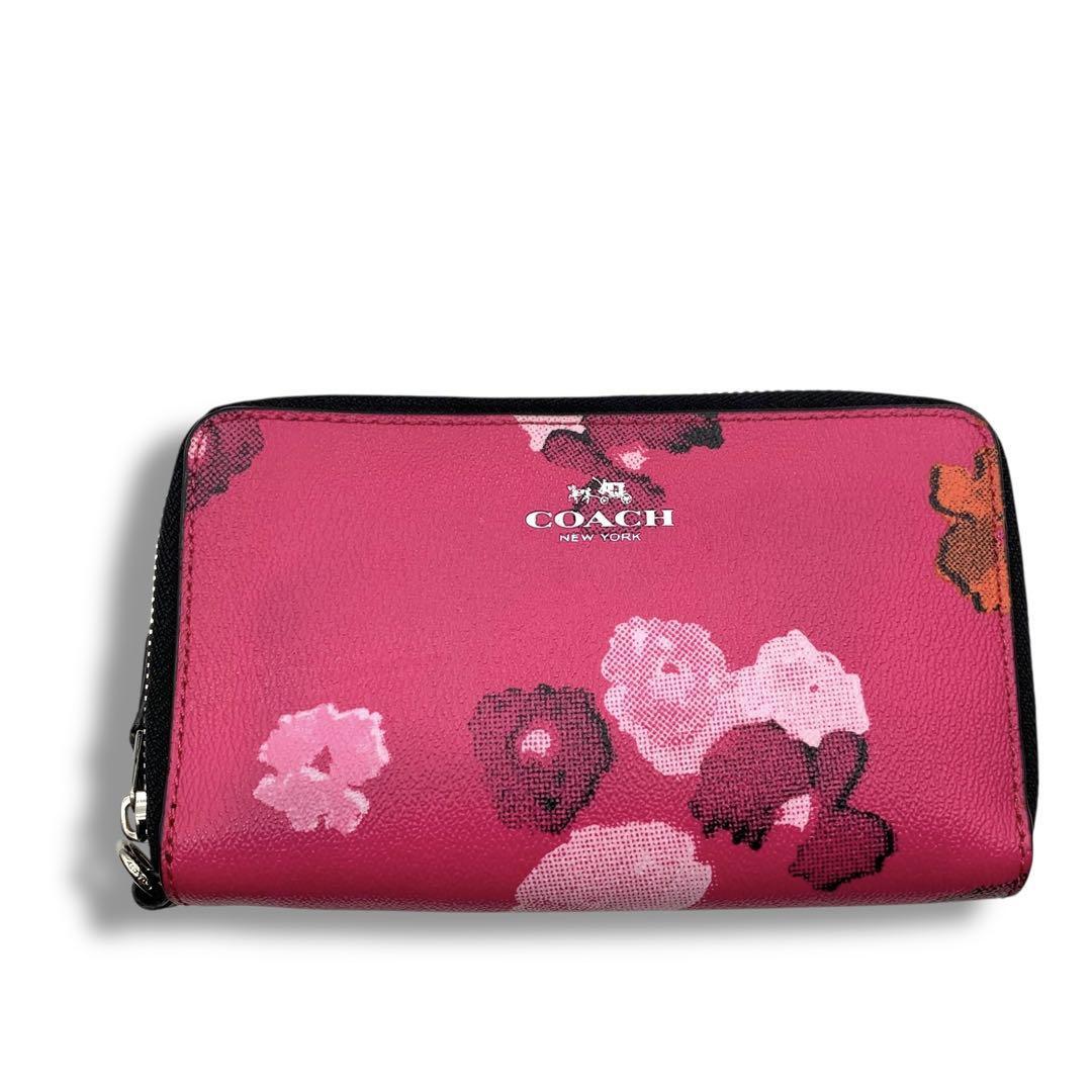 コーチ 花柄 レザー ラウンド ジップ 財布