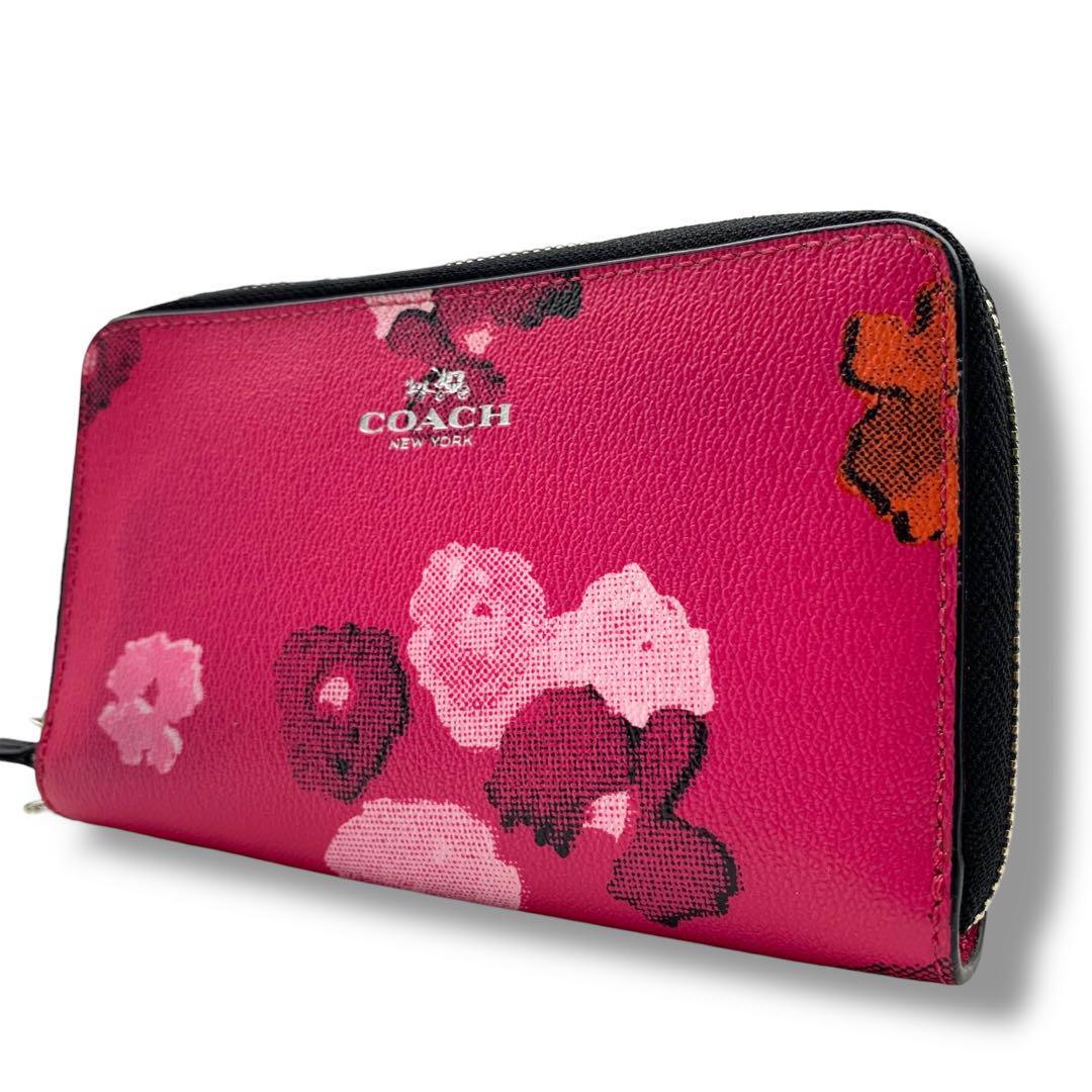 コーチ 花柄 レザー ラウンド ジップ 財布