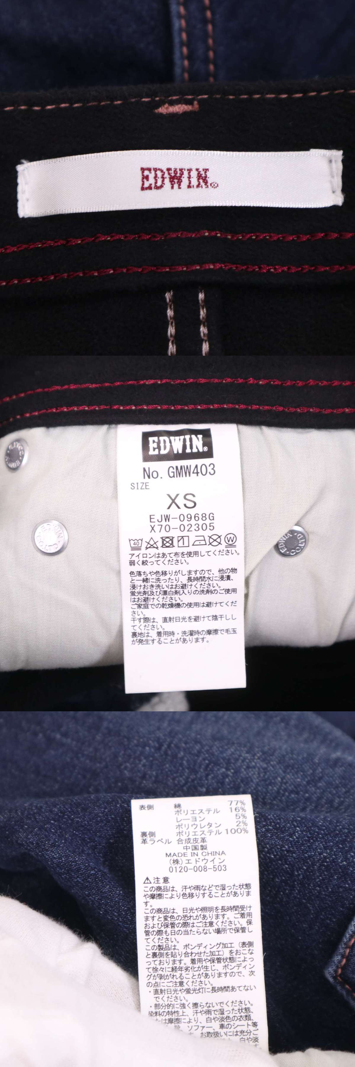 EDWIN エドウィン GMW403 秋冬★ USED加工 ストレッチ 裏起毛 デニム パンツ ジーンズ Sz.XS レディース