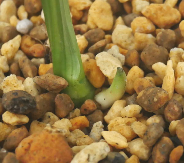 株の状態: バルブ→新葉2枚葉(28cmと26cmで形成)    ※中々大です