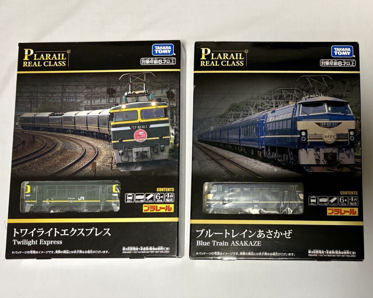 プラレールリアルクラスの、トワイライトエクスプレスと、ブルートレインあさかぜの各1セットずつです。