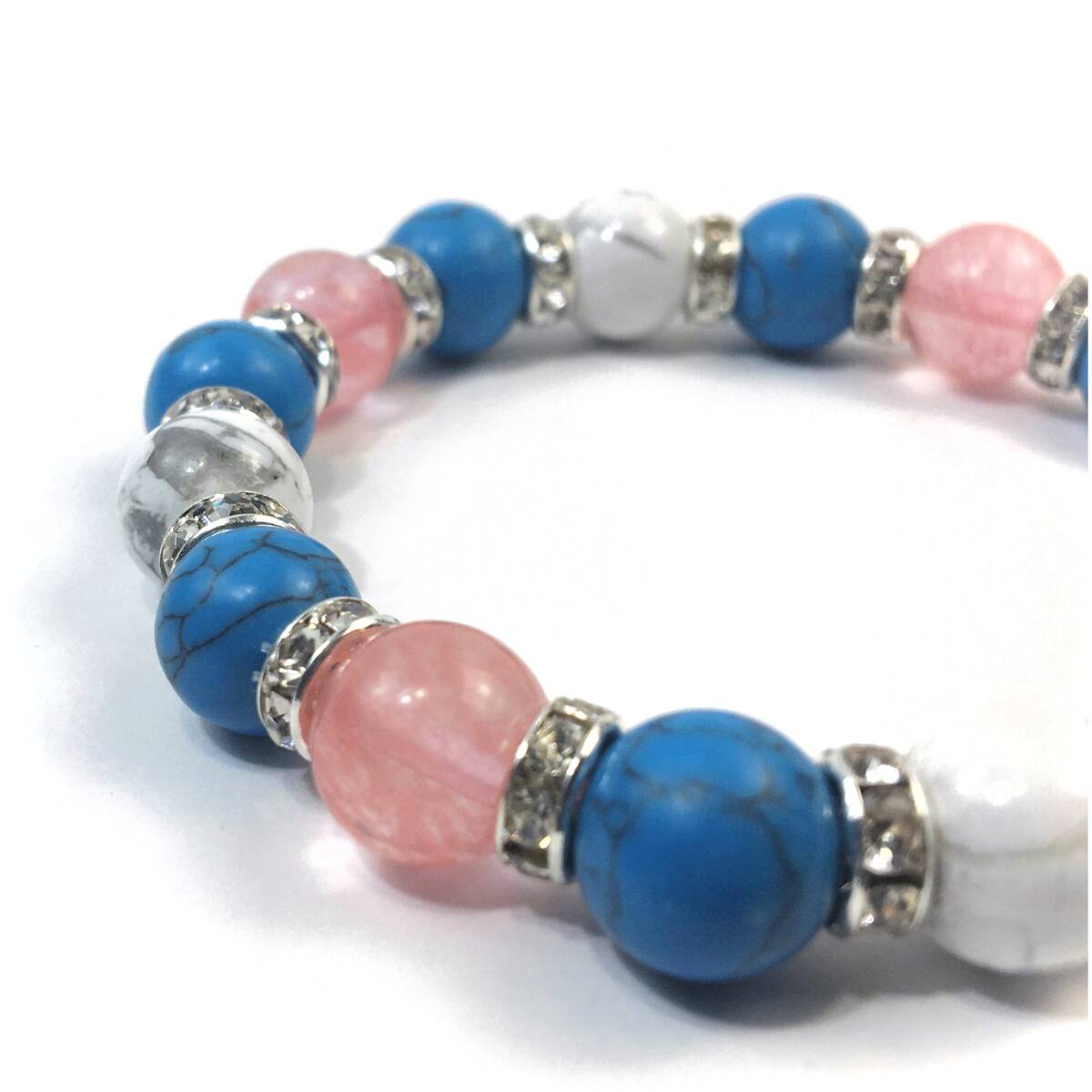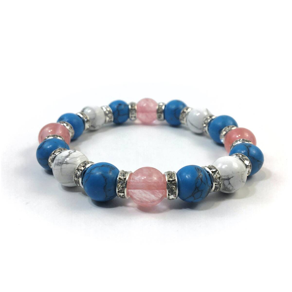 チェリークォーツ ×ハウライト×ターコイズ パワーストーン ブレスレット (ロンデル: シルバー) 10mm メンズ・レディース