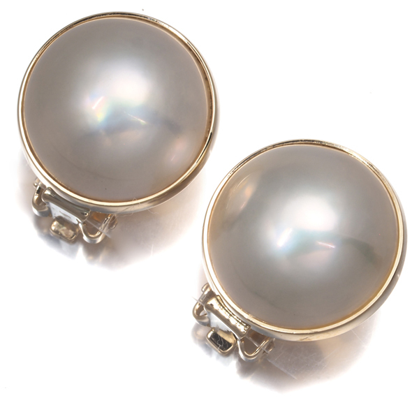 ゴールドフレームへふっくらとしたフォルムを持つタサキ厳選マベパールの輝きを留めたイヤリング。鮮やかなテリと共に美しい干渉色浮かぶ煌めきが耳元を上品に演出してくれますよ。 |
