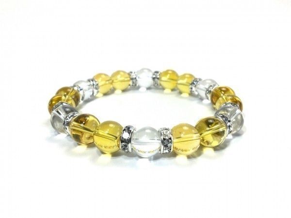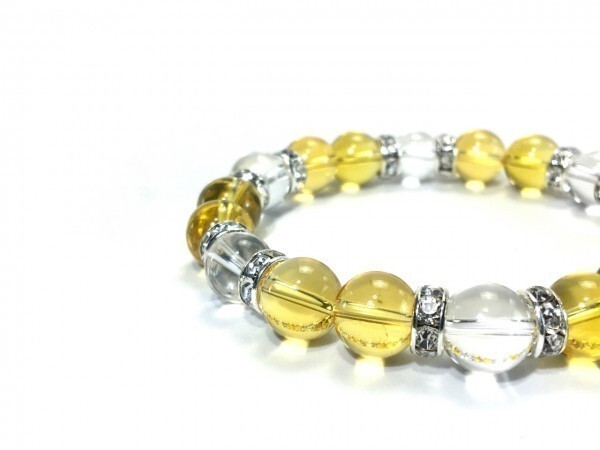 シトリン×水晶 パワーストーン ブレスレット 天然石ブレス 10mm (ロンデル:シルバー) メンズ・レディース 浄化済み