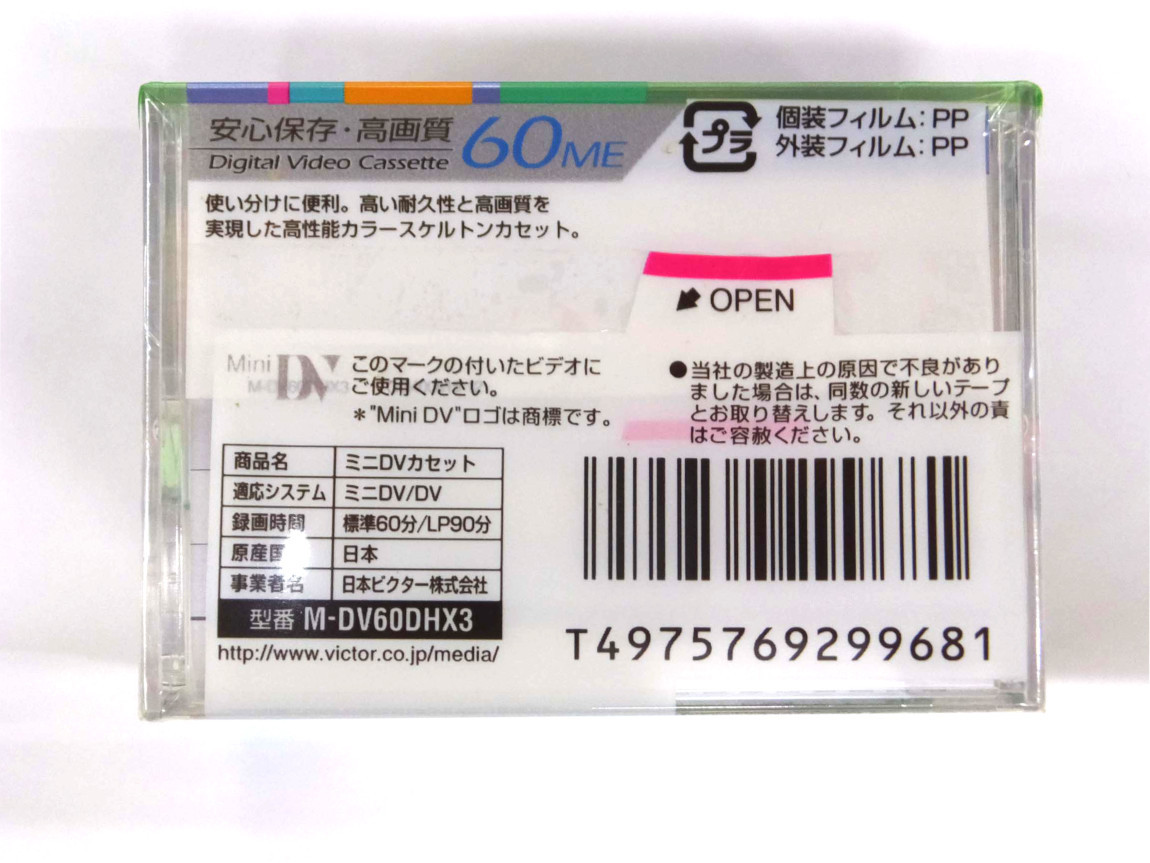 未開封 未使用 Victor ミニDVカセット 60ME 3巻 セット 原産国:日本 miniDV M-DV60DHX3 3本 パック | |