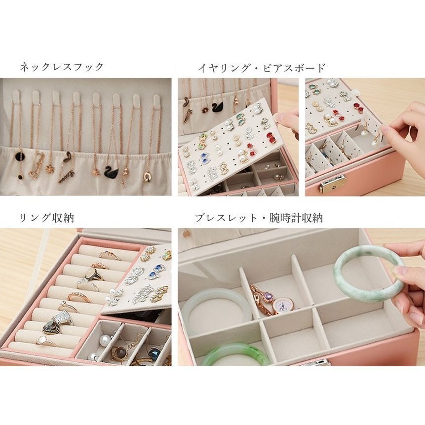 アクセサリーケース 【新型 ブラック】 ジュエリーボックス お洒落 アクセサリー収納 2段 鍵付き LB-170 | |||||||||||