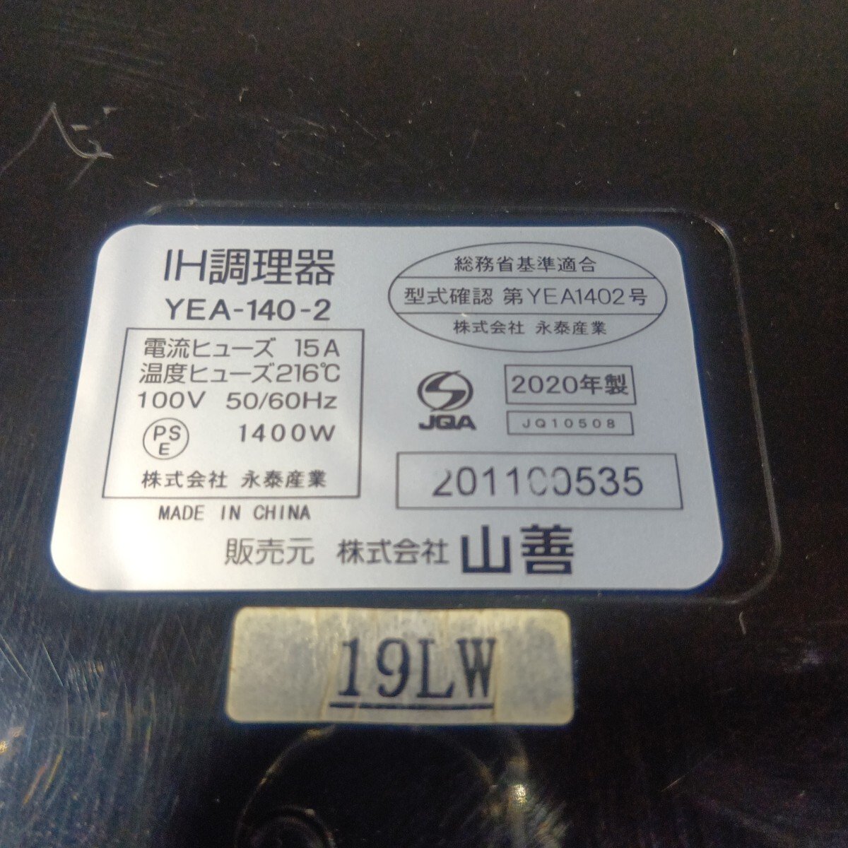 B2100 山善 卓上型 IHクッキングヒーター YAMAZEN IH調理器 YEA-140-2 ブラック IHコンロ ヤマゼン 2020年製 通電OK 火力調節5段階 現状