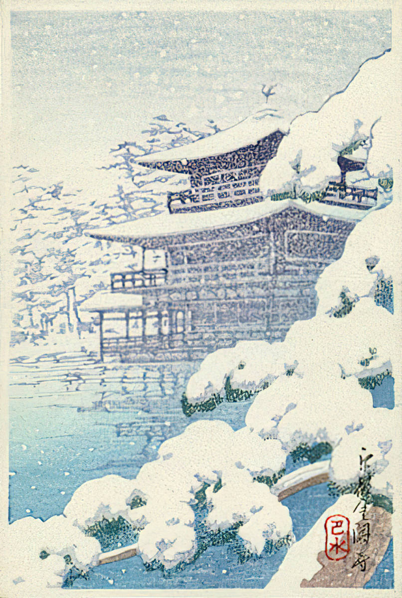 川瀬巴水『京都・金閣寺』他 3枚セット 85x156mm 原寸サイズ 木版画 複製 高品質◆ 吉田博 斉藤清 小原古邨 版画 浮世絵 新版画
