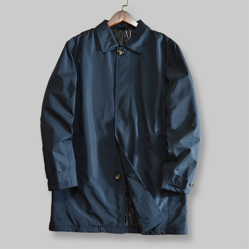 ステンカラーコート メンズ ビジネス コート 防風 裏中綿キルティング 暖かい ハーフ丈 秋冬 アウター ネイビー/A1445-L