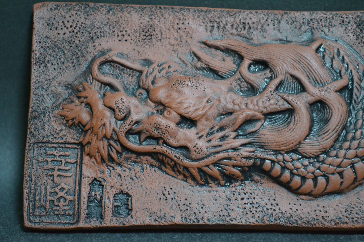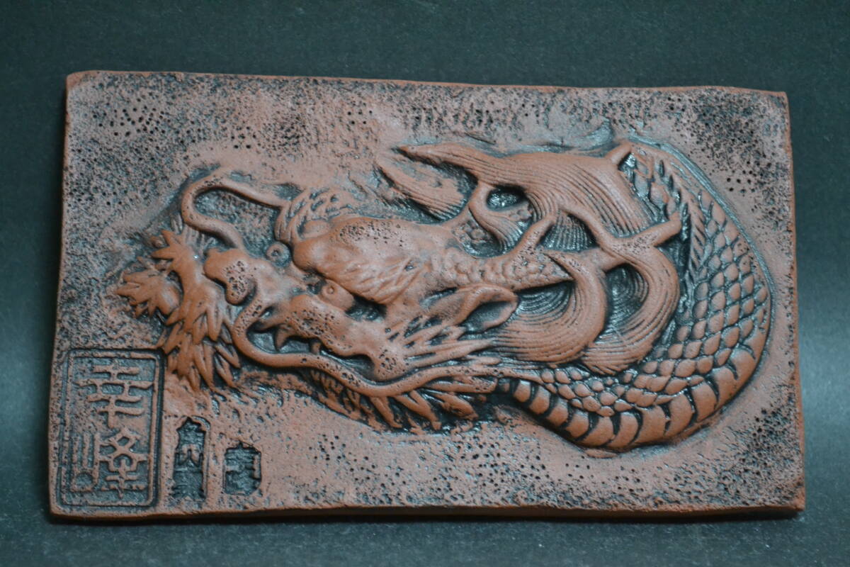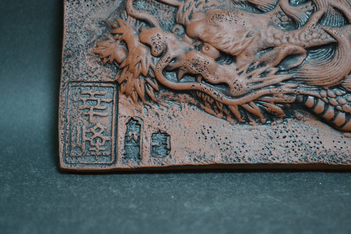 常滑 角山陶苑 幸峰作 幅13cm 落款プレート この作品は幸峰の大変出来の良い素地に、幸峰の特技、彫刻技法にて龍図を施した逸品です。とても手間と時間を掛けた職人の技が光る逸品です。 寸法(約):13×7.5×0.5(幅×奥行×厚みcm) 新品・未使用です。 常滑焼 角山陶苑5代目幸峰作 作家紹介・・・陶号、幸峰 、常滑の窯元、角山陶苑の4代目父角山に師事、手造り成型・釉薬・焼成まで鉢造りを学ぶ。 長三賞陶業展入選数回 第62回とこなめ焼振興展 卸団地理事長賞受賞 雅風展 第17回現代小鉢作家展 泥物の部 銀賞 第18回現代小鉢作家展 泥物の部 銅賞 第19回現代小鉢作家展 泥物の部 金賞 落款は幸峰・角山窯 状態等画像にてご確認の上ご入札よろしくお願いいたします。 | ||