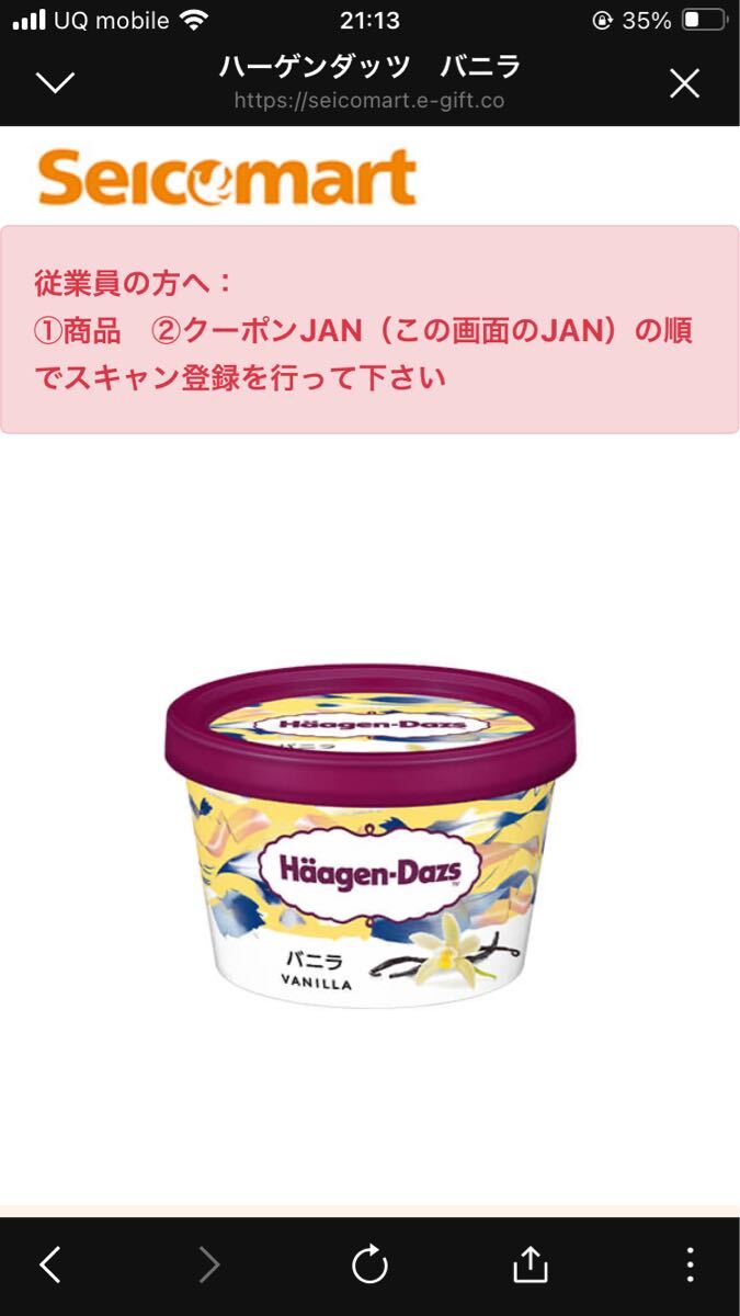 キャンペーンでいただいた、ハーゲンダッツバニラの交換券です。Seicomartで引換ができます。